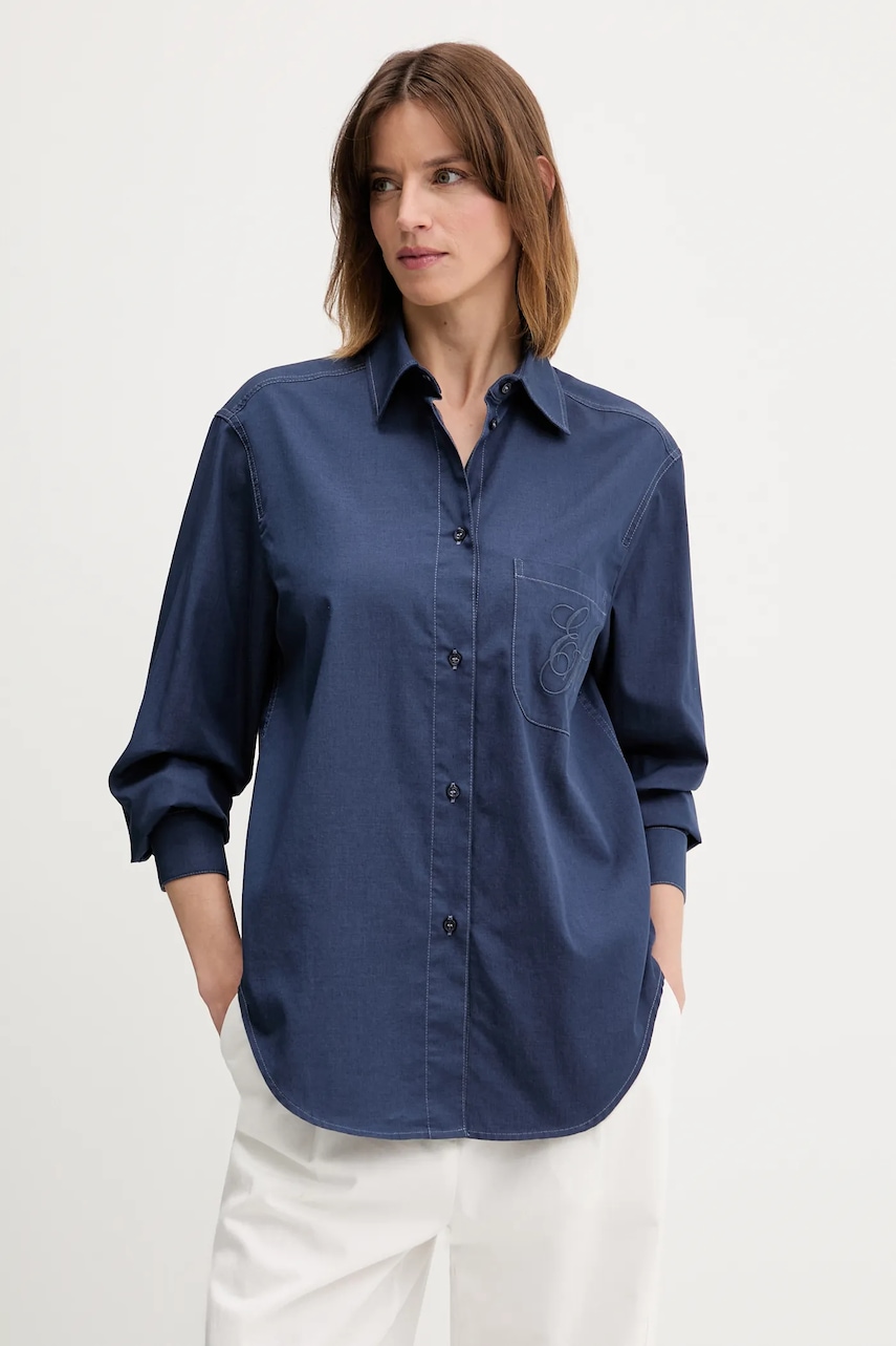Emporio Armani koszula damska kolor granatowy regular z kołnierzykiem klasycznym EW000739 AF12432