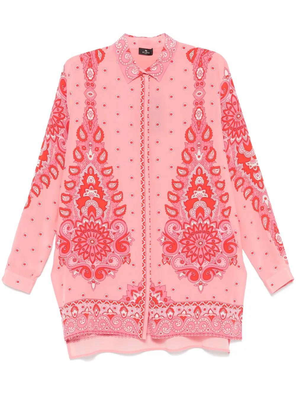 rose pink front button placket buttoned cuffs side slits box-pleat detail