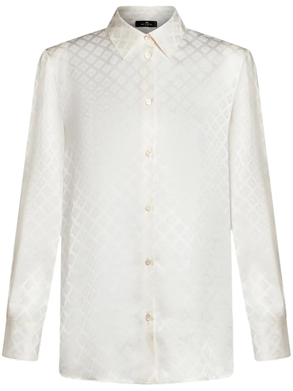 white silk full jacquard classic collar long sleeves buttoned cuffs curved hem