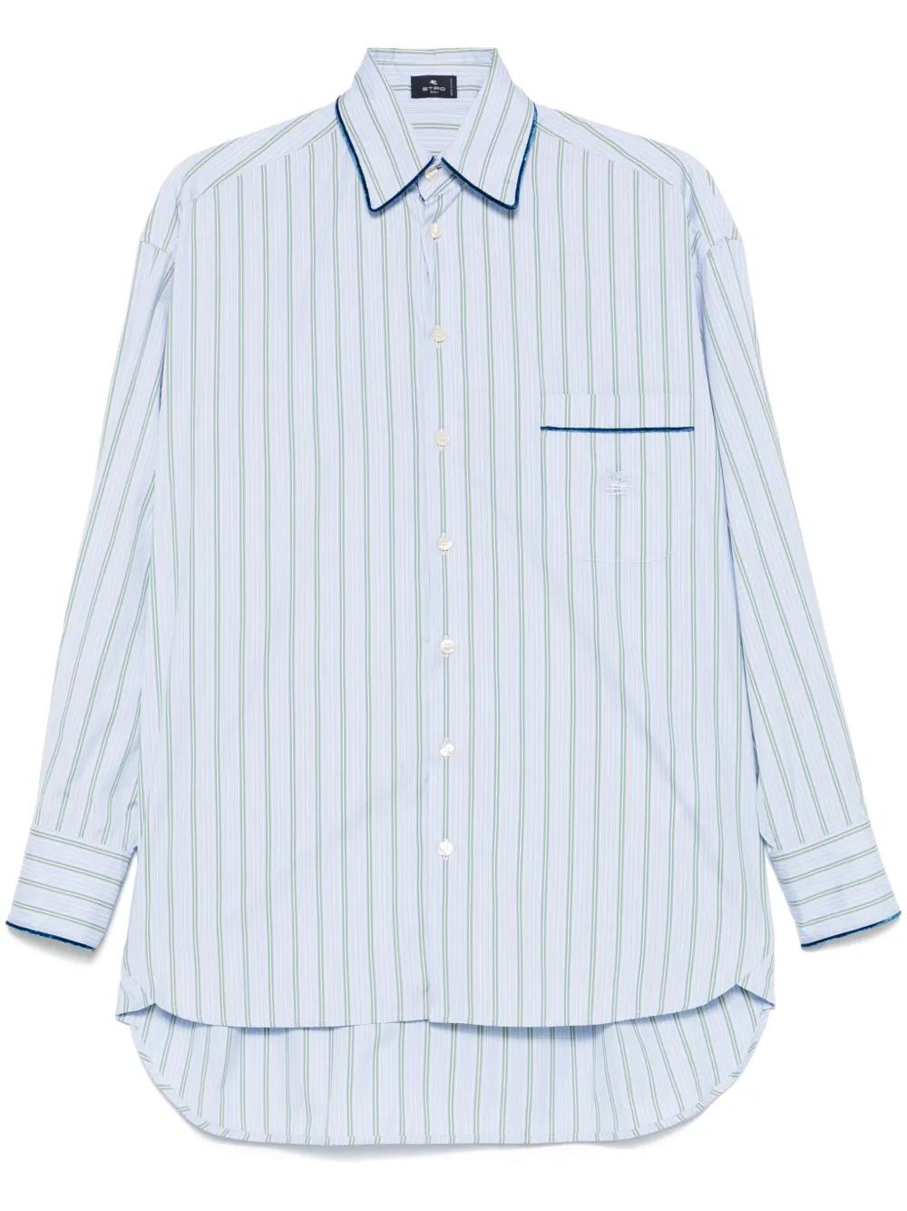cornflower blue front button fastening chest patch pocket buttoned cuffs signature Pegaso motif