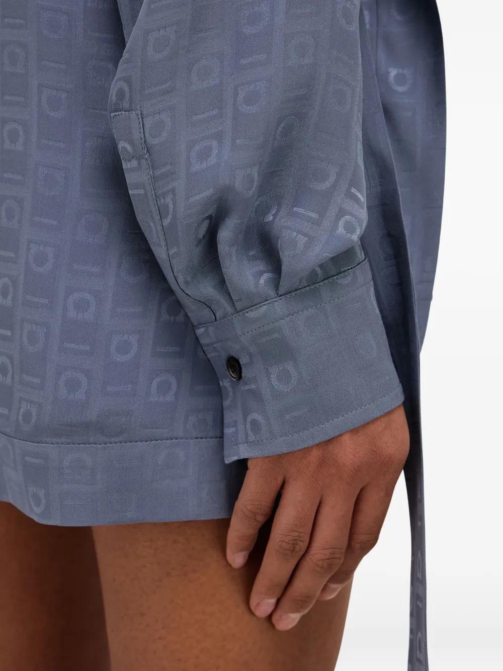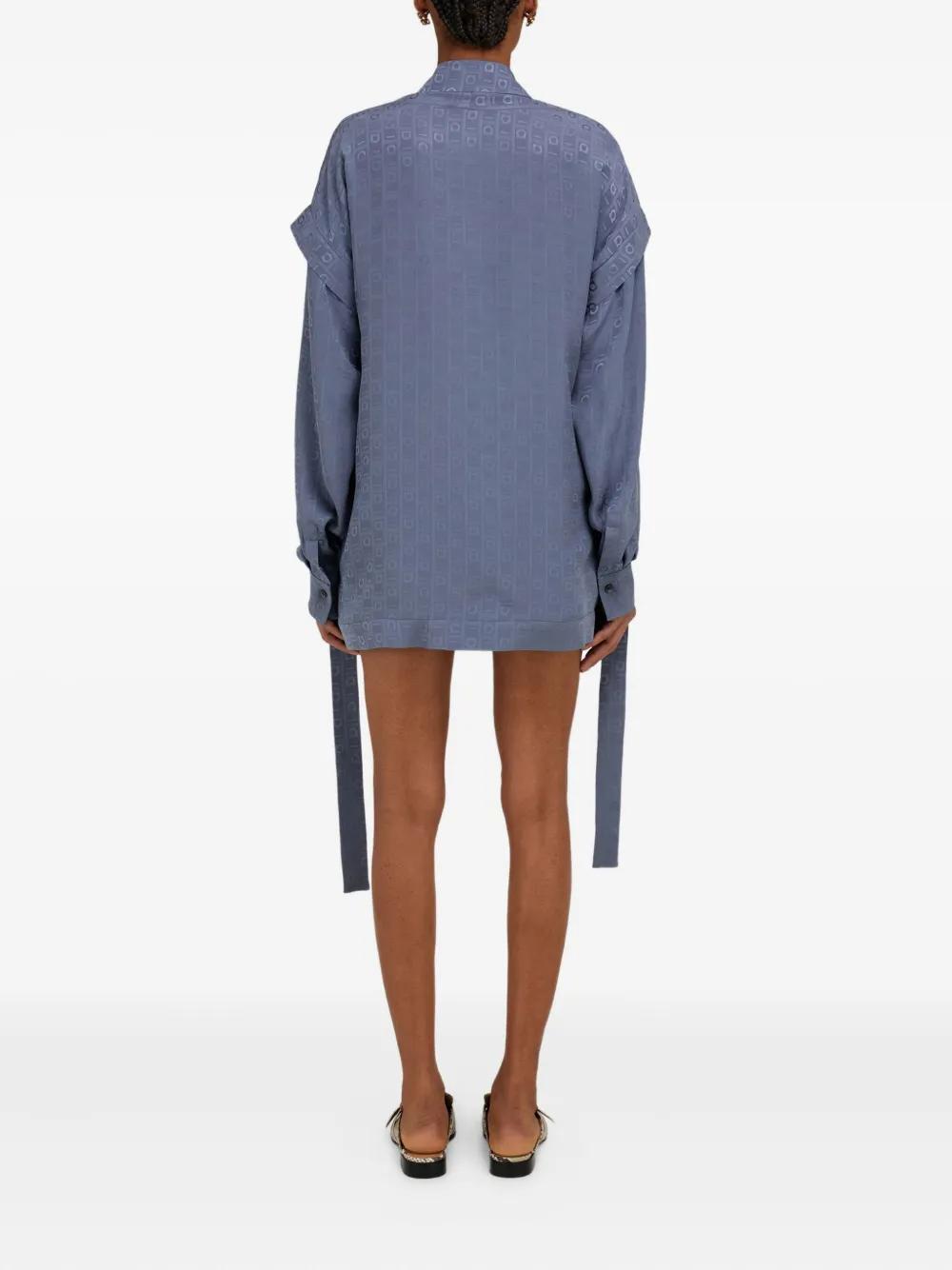 pastel blue front button fastening classic collar sash detail buttoned cuffs