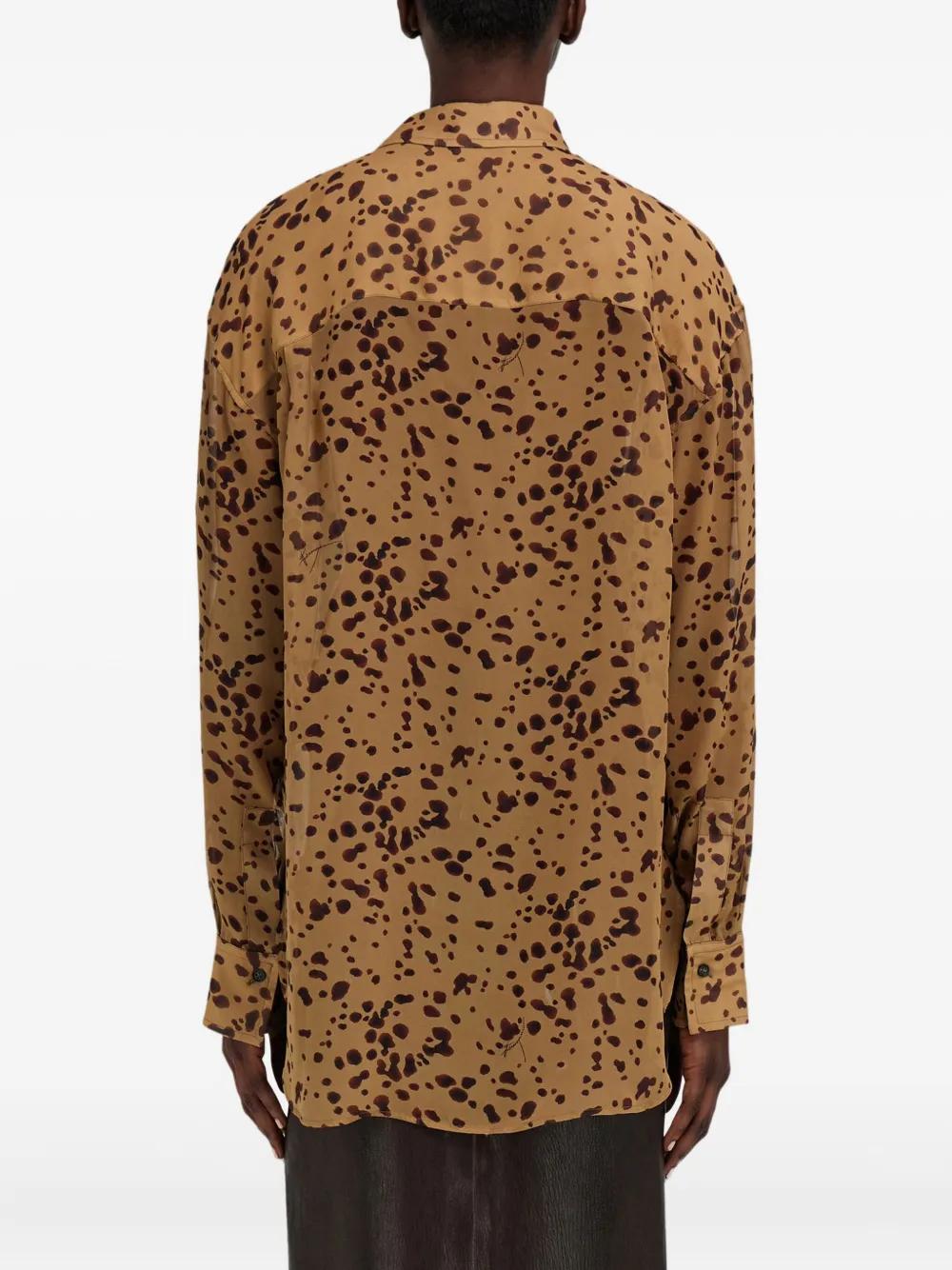 brown orchid print button fastening long sleeves curved hem classic collar