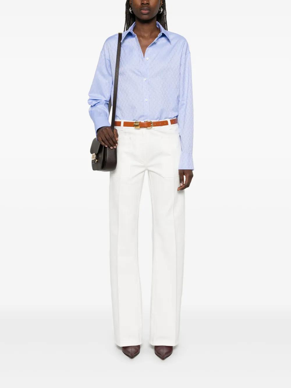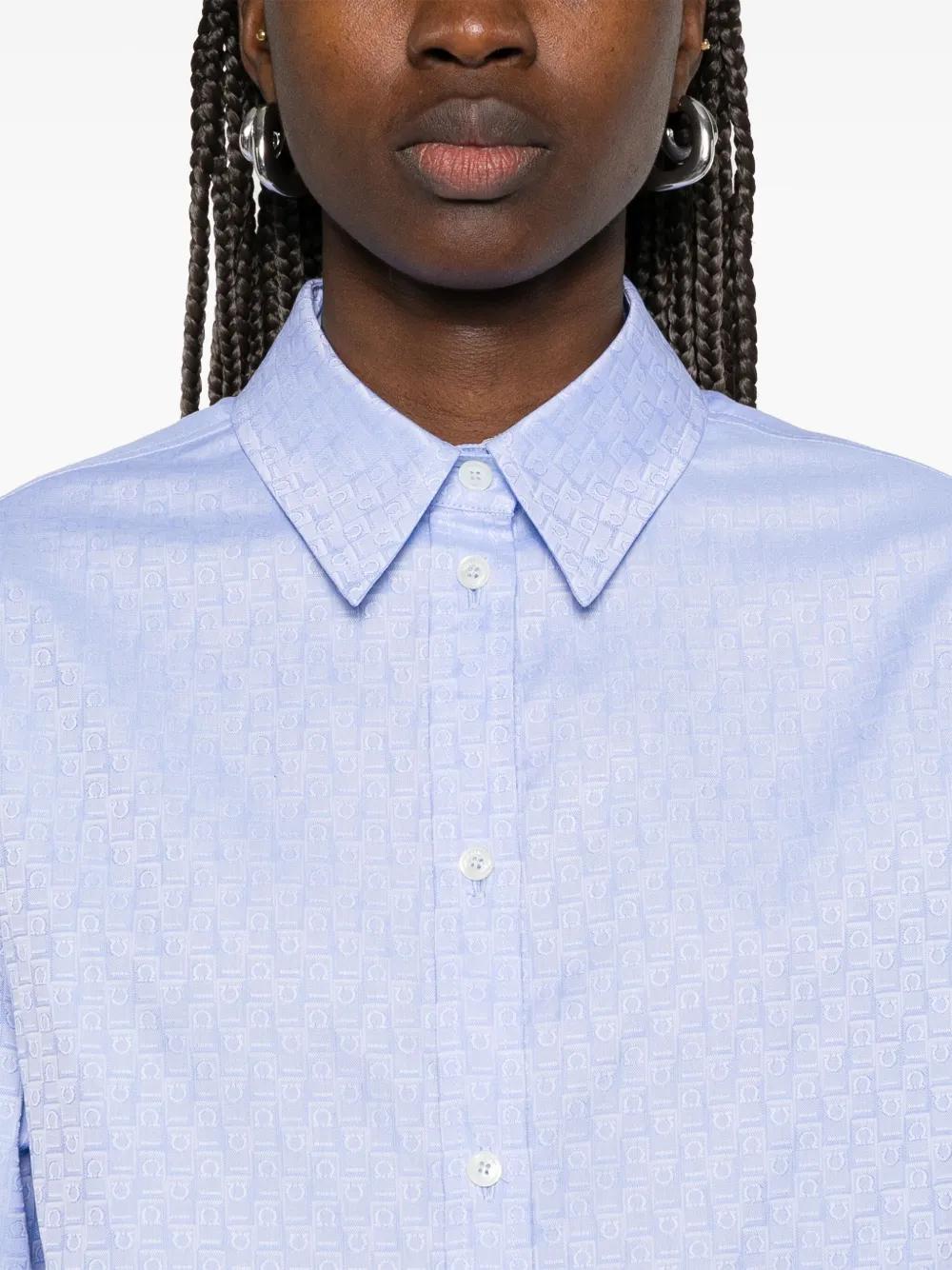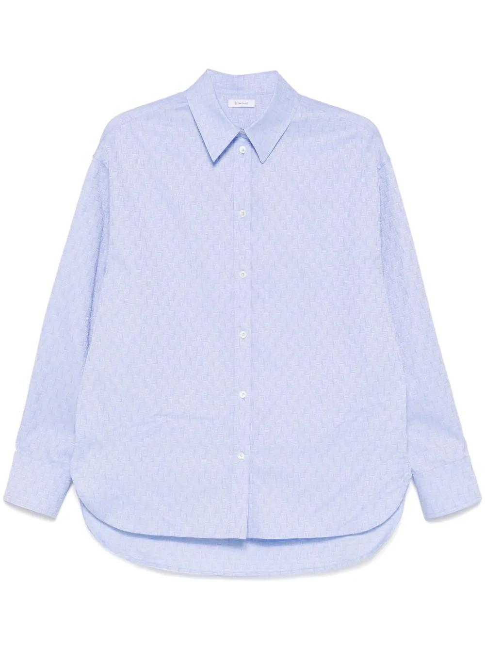 cornflower blue front button fastening buttoned cuffs long sleeves geometric-pattern print