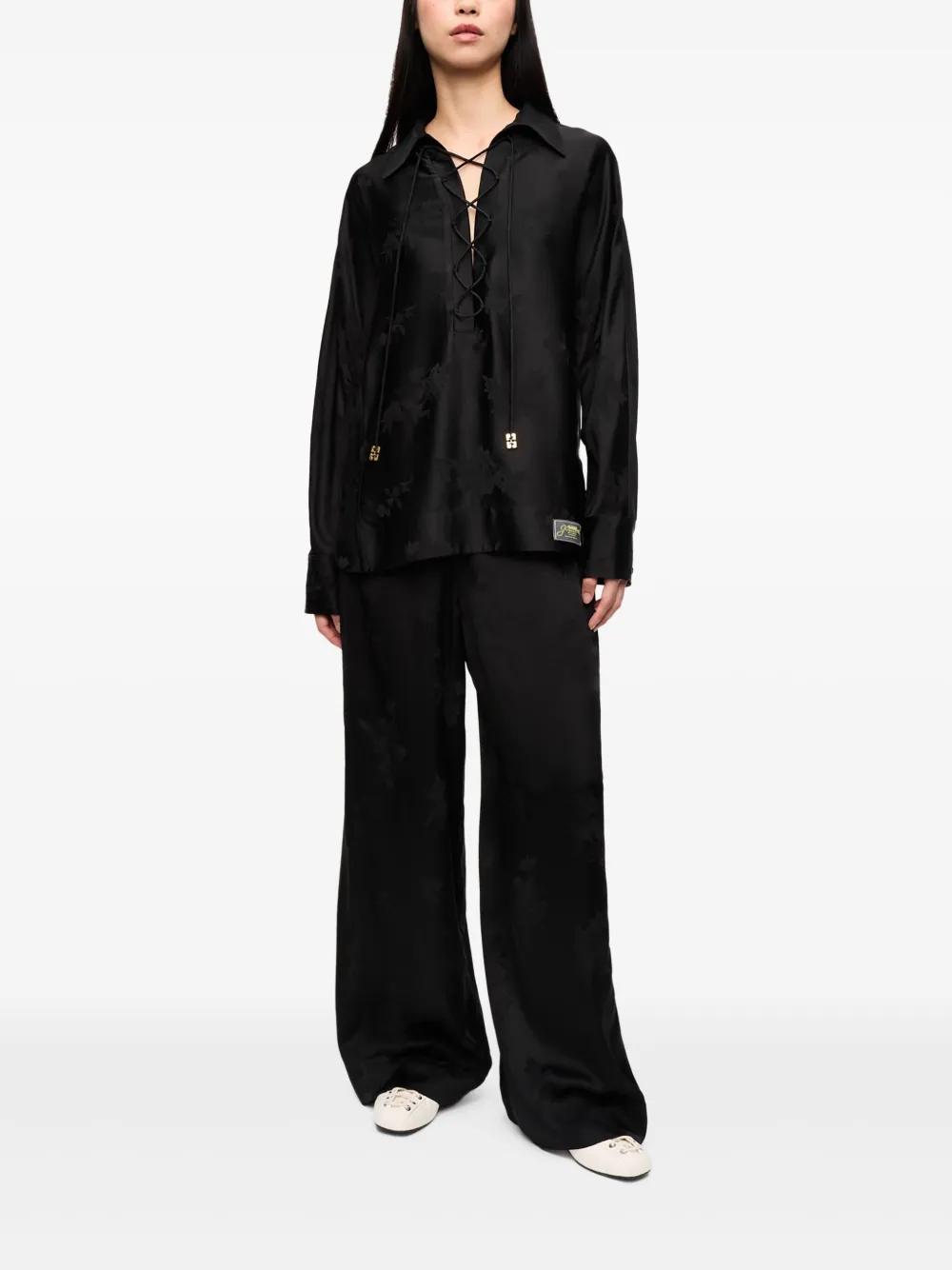 black front lace-up fastening buttoned cuffs logo tag classic collar