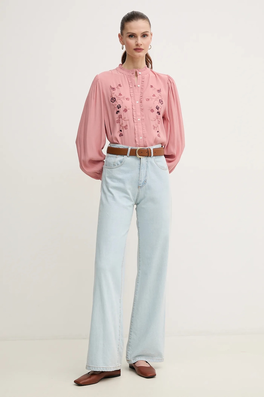 Hoss Intropia koszula damska kolor różowy regular ze stójką 6289134
