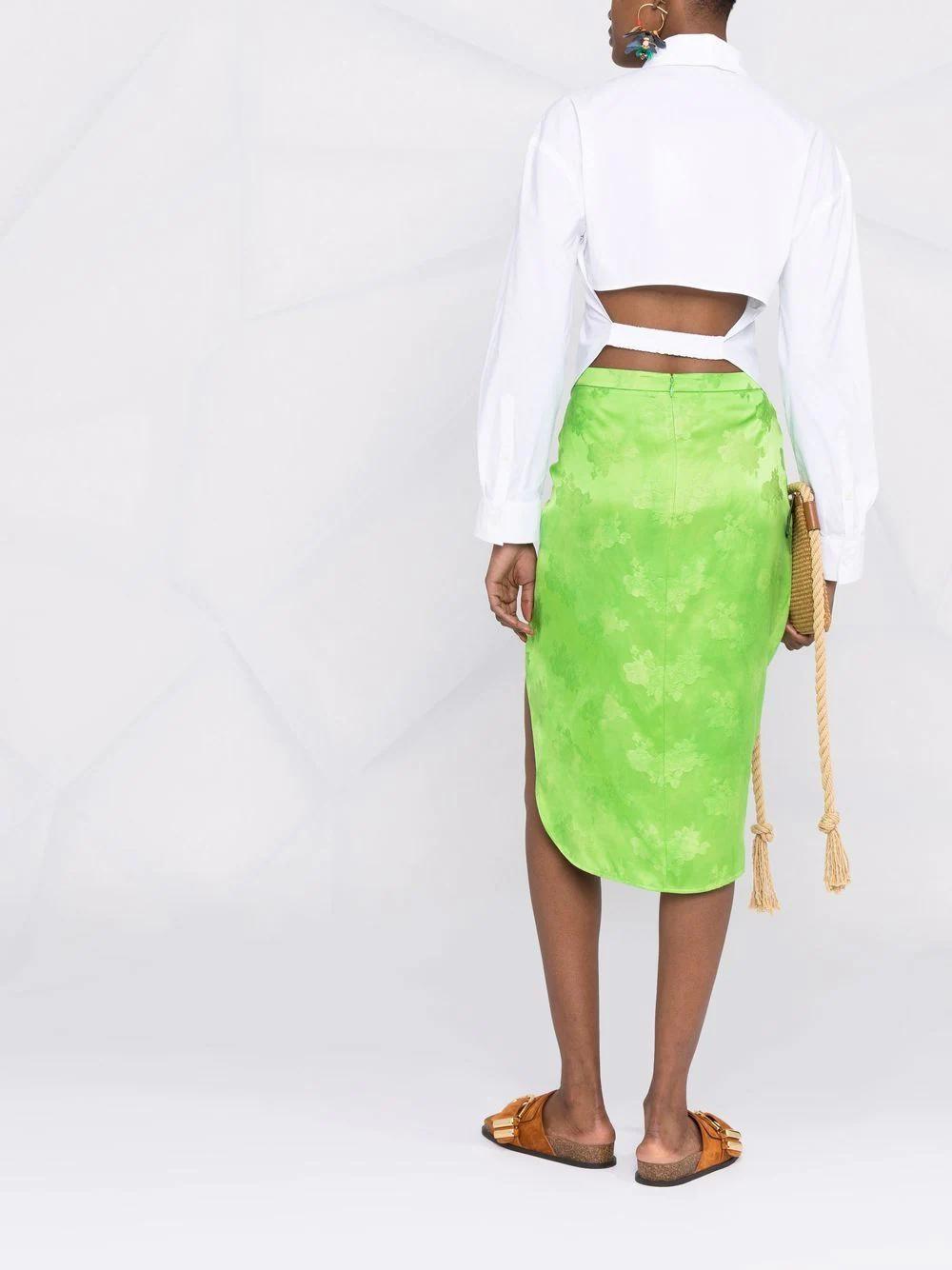 White cotton La chemise Aqua fitted shirt from JACQUEMUS featuring classic collar, front button fastening, chest patch pocket, long sleeves, buttoned cuffs, cut-out detailing and elasticated strap.