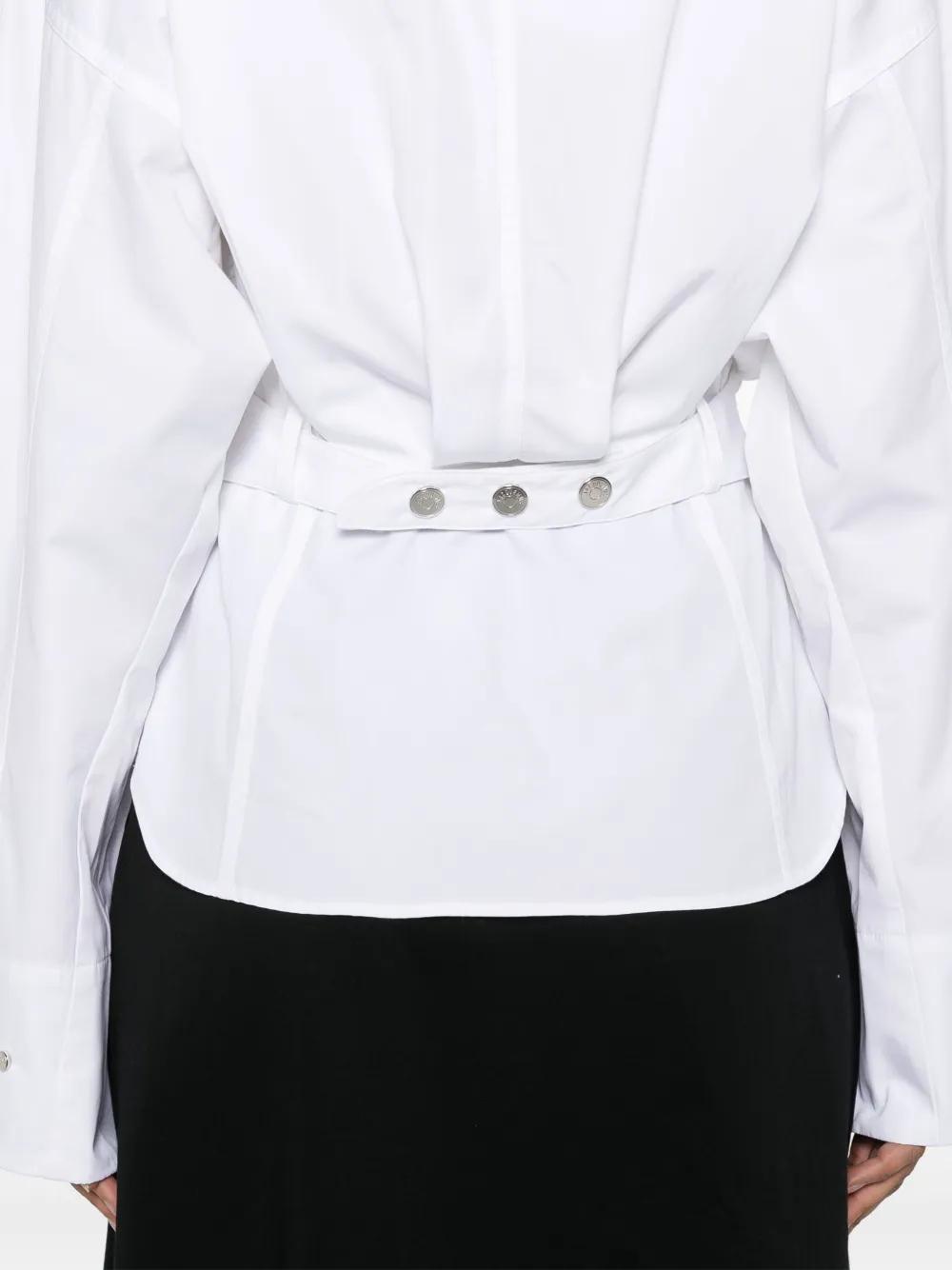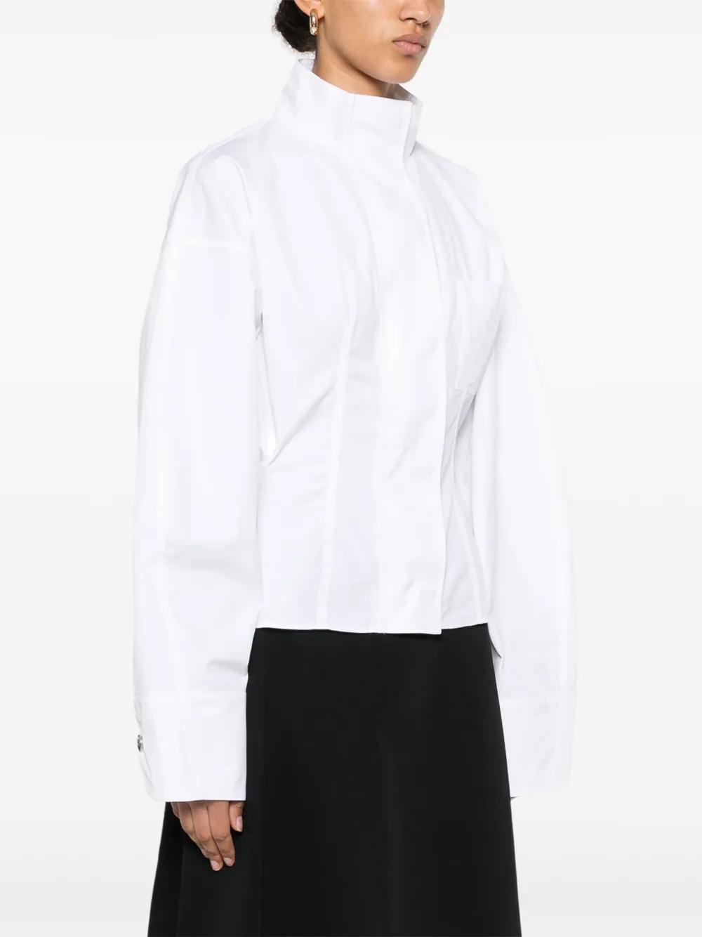 white front press-stud and zip fastening chest patch pocket press-stud fastening cuffs adjustable strap to the rear