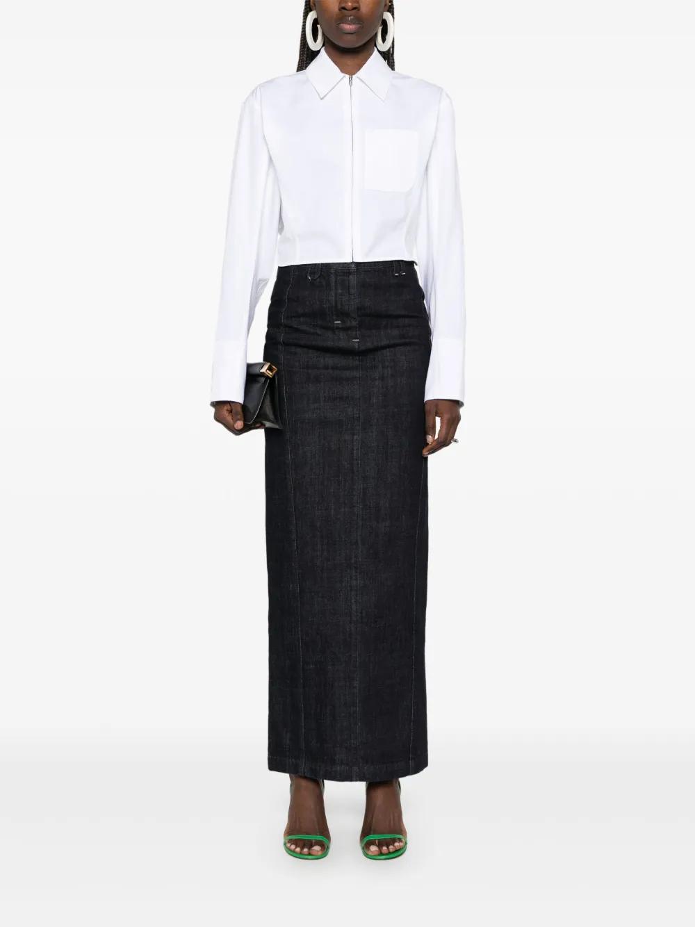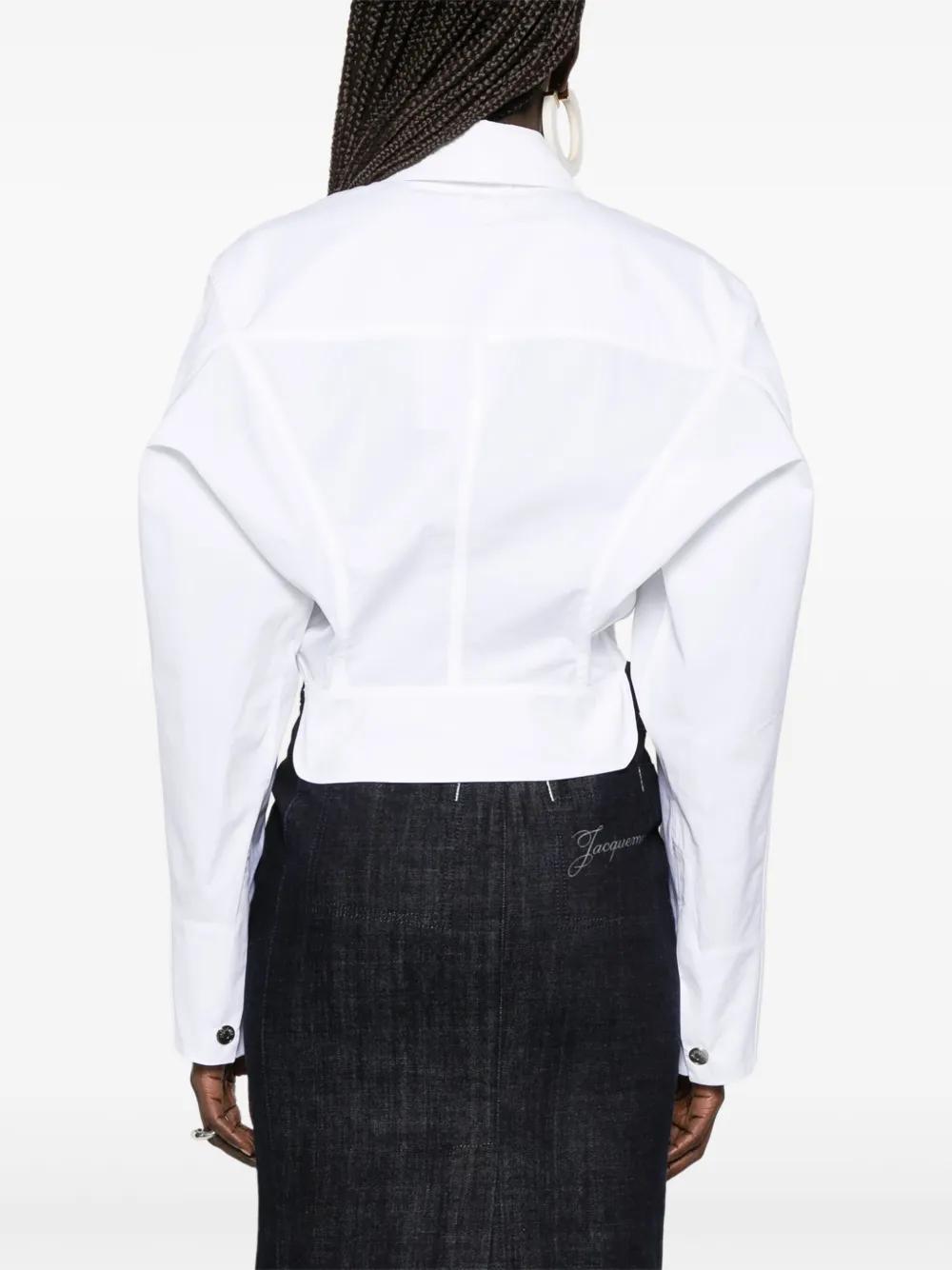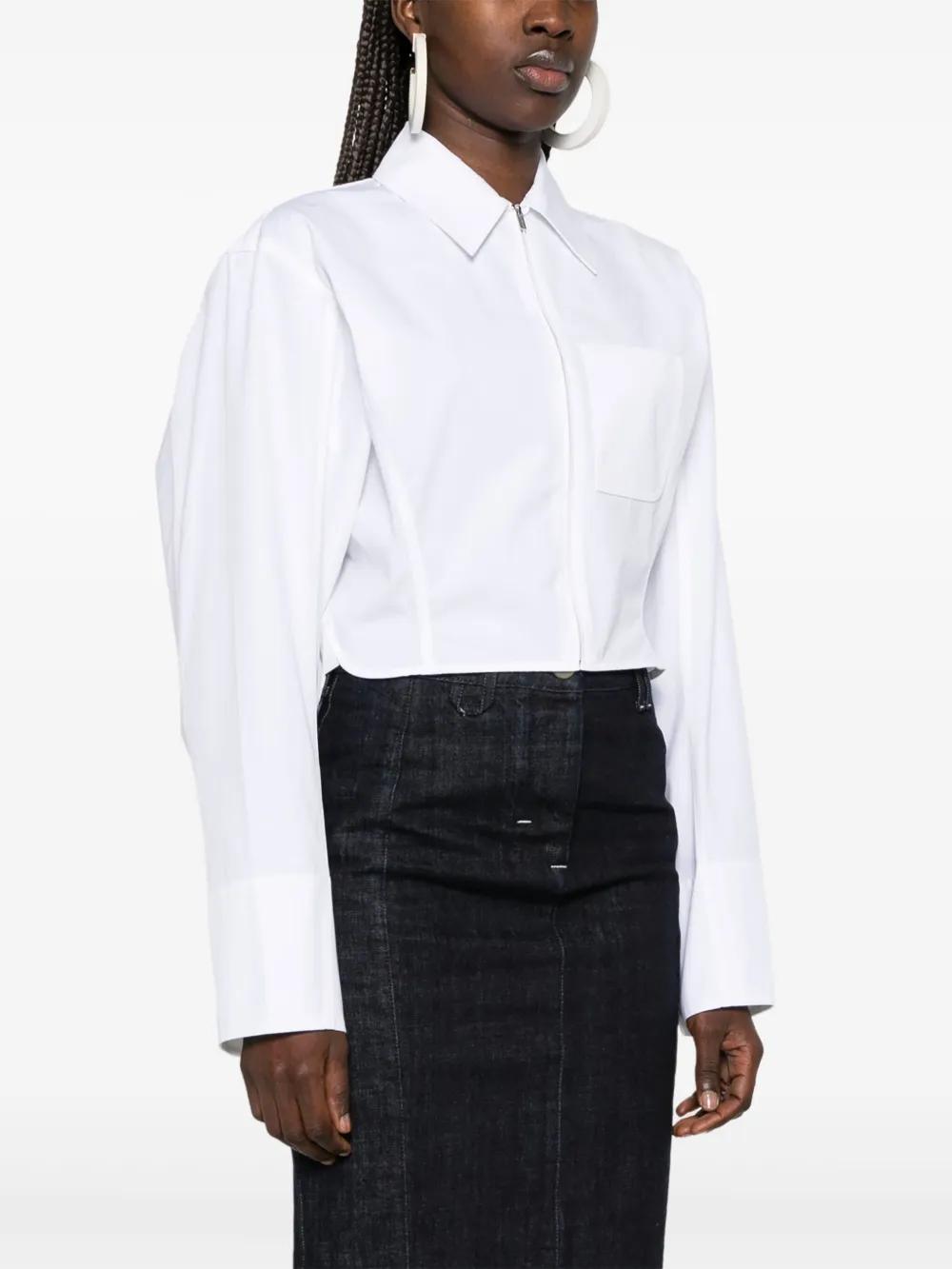 white front zip fastening chest patch pocket buttoned cuffs cropped