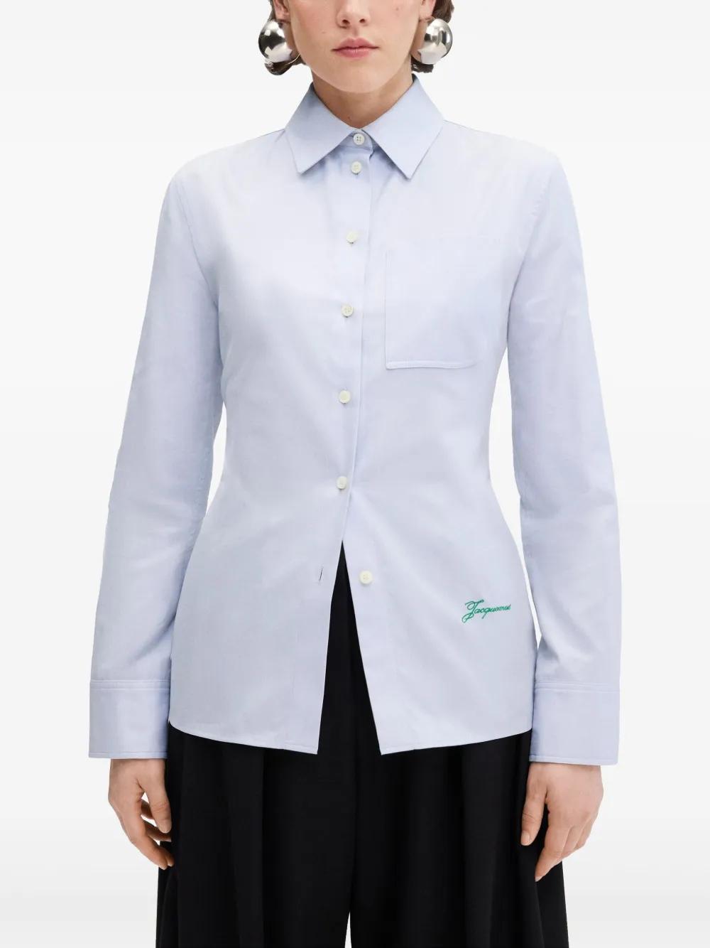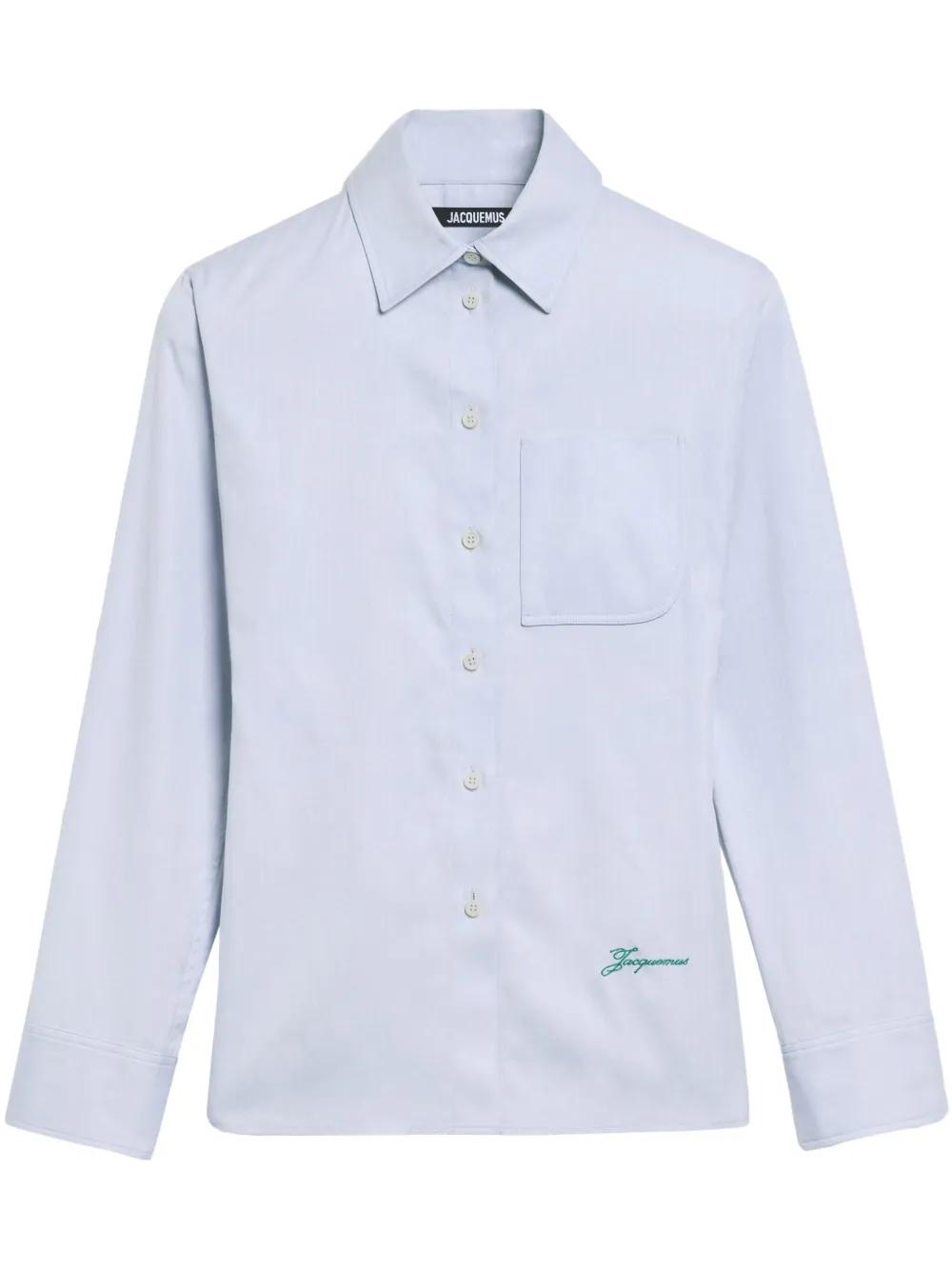 ash grey front button fastening chest patch pocket long sleeves cut-out detailing