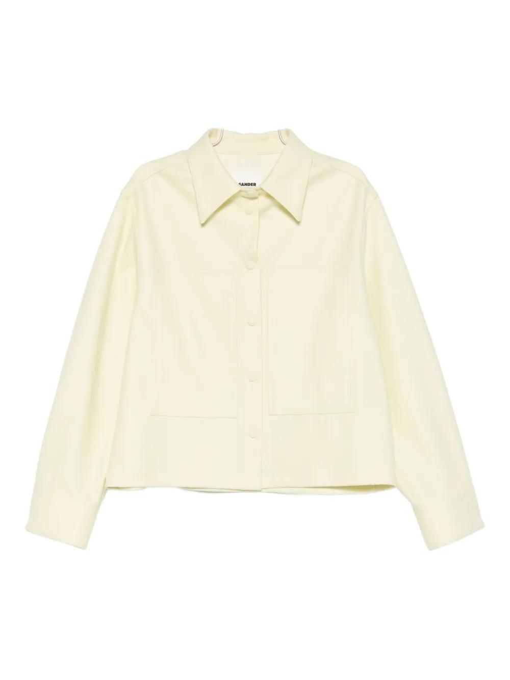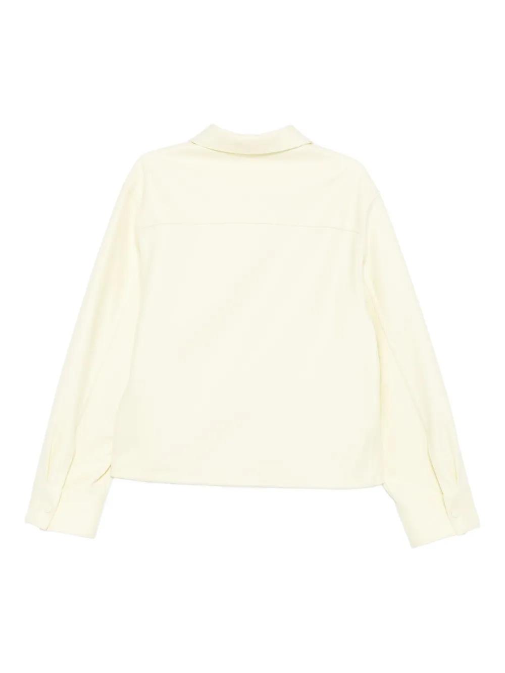 pale yellow button fastening point collar long sleeves two chest patch pockets straight hem