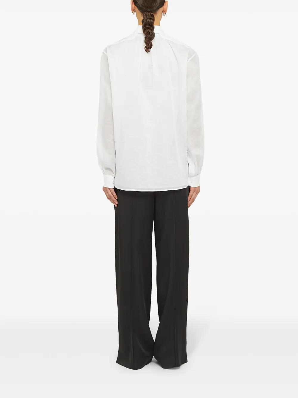 white cotton pleat detailing classic collar concealed front button fastening long sleeves straight hem