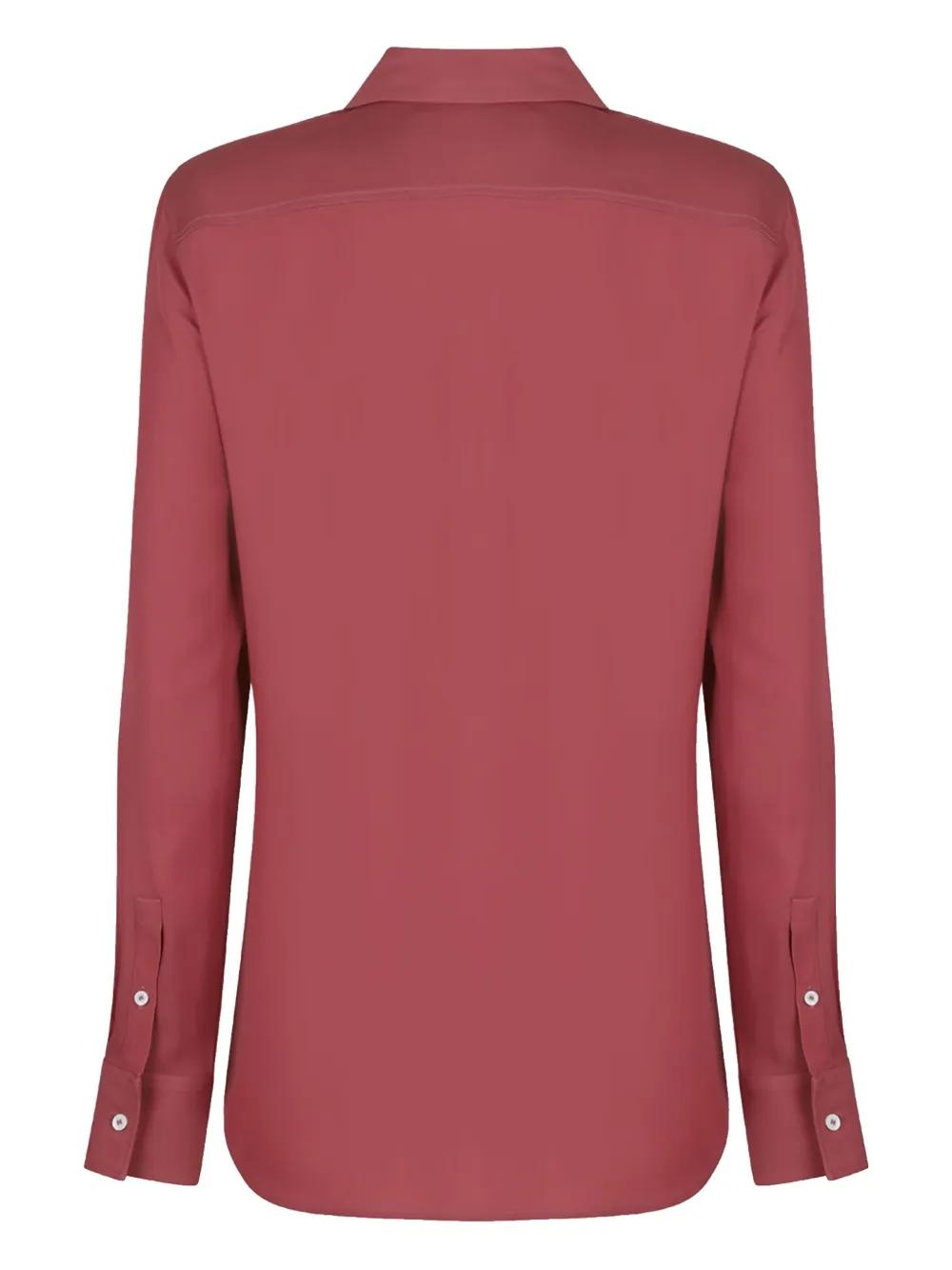 brick red front button fastening chest patch pocket buttoned cuffs pointed flat collar
