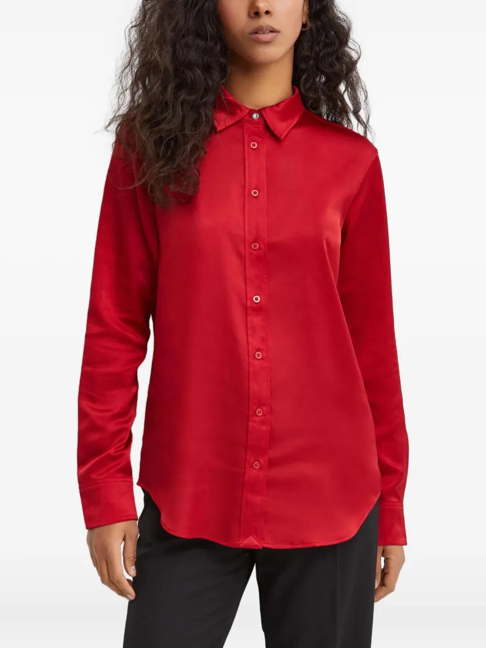red button fastening long sleeves classic collar