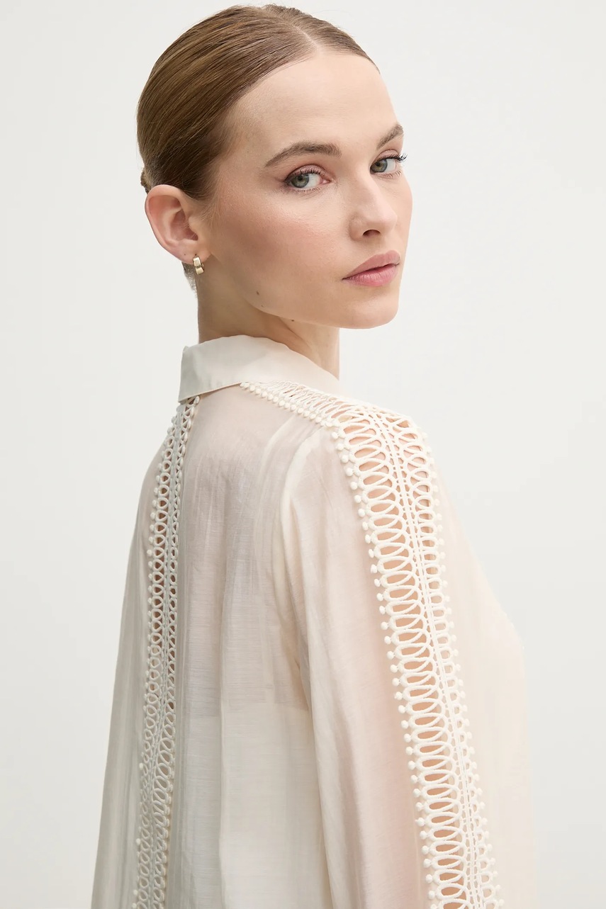 Marc Aurel koszula damska kolor beżowy regular z kołnierzykiem klasycznym 6285-1010-93403