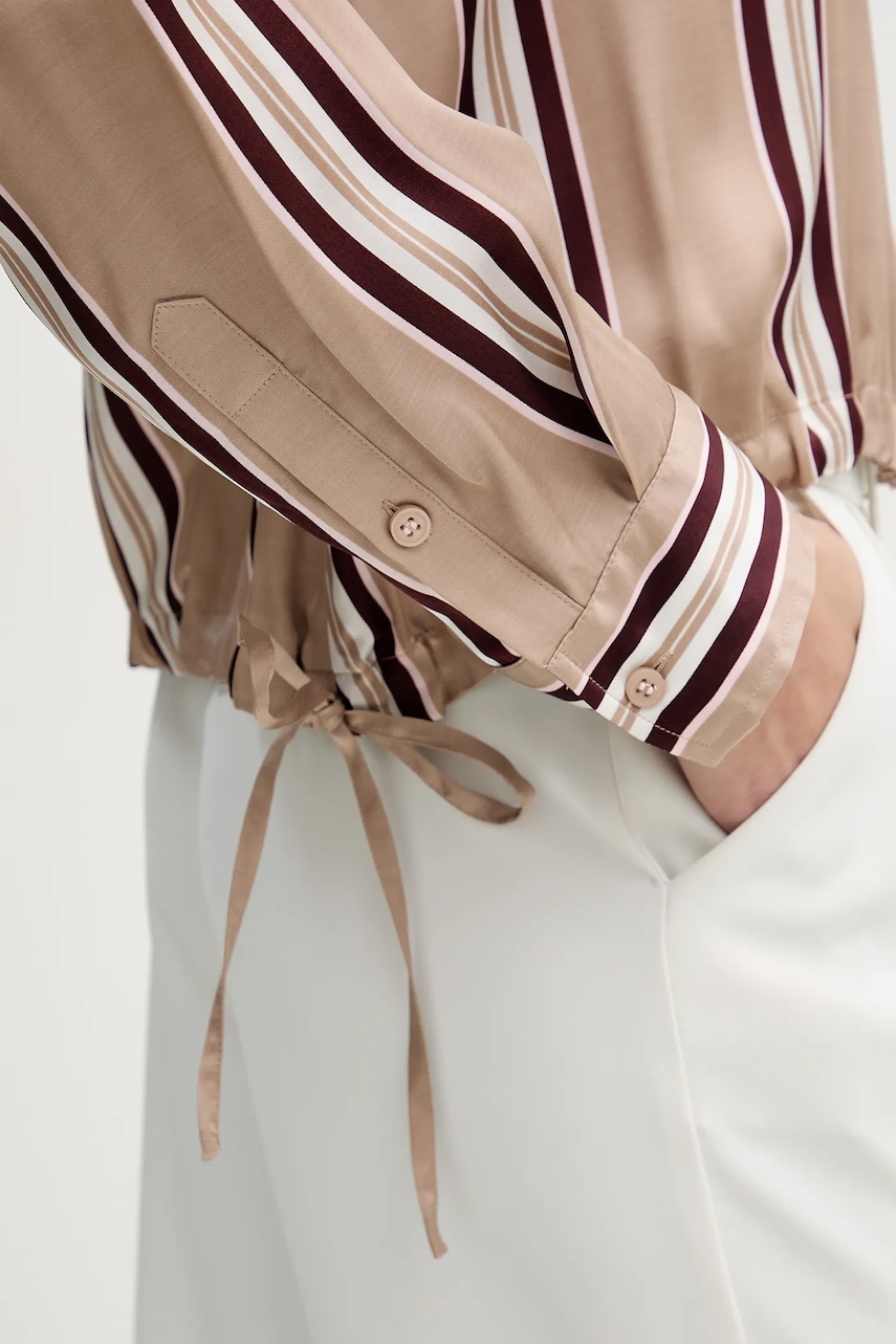 - Koszula w fasonie relaxed charakteryzuje się luźnym krojem, zapewnia komfort i nie krępuje ruchów. - Krój rękawa z obniżoną linią ramion nie ogranicza mobilności. - Długi rękaw. - Kryte zapięcie na guziki. - Model z kołnierzykiem. - Mankiety zapinane na guziki. - Dolna krawędź wykończona troczkami, które zapewniają indywidualne dopasowanie. - Wzór w pasy. - Długość rękawa(mierzona od kołnierzyka): 72 cm. - Długość: 51 cm. - Szerokość pod pachami: 60 cm. - Wymiary podane dla rozmiaru: 36.