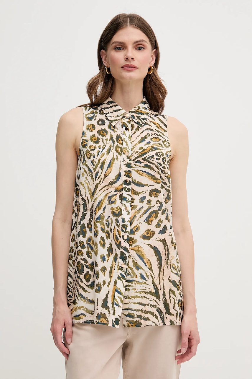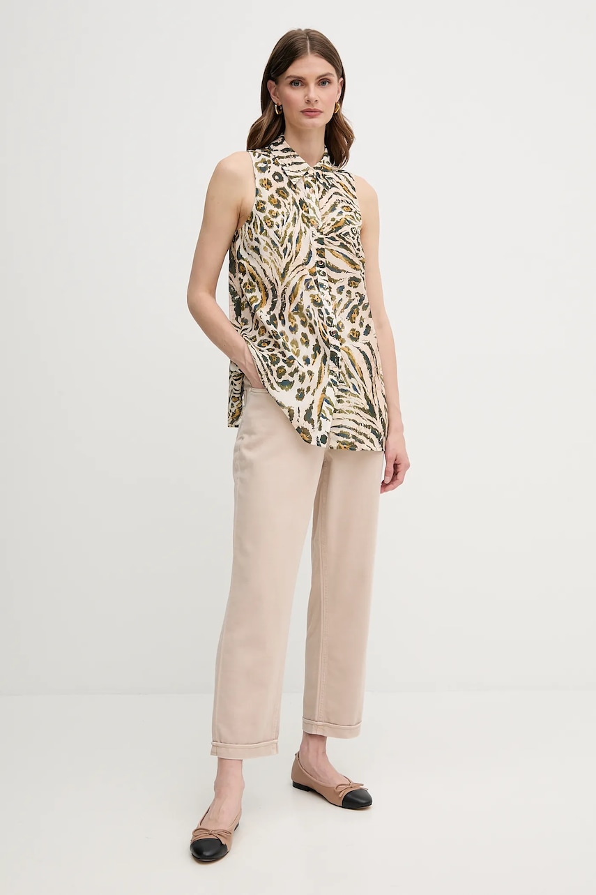 Marc Aurel koszula damska kolor beżowy relaxed z kołnierzykiem klasycznym 6322-1000-93436
