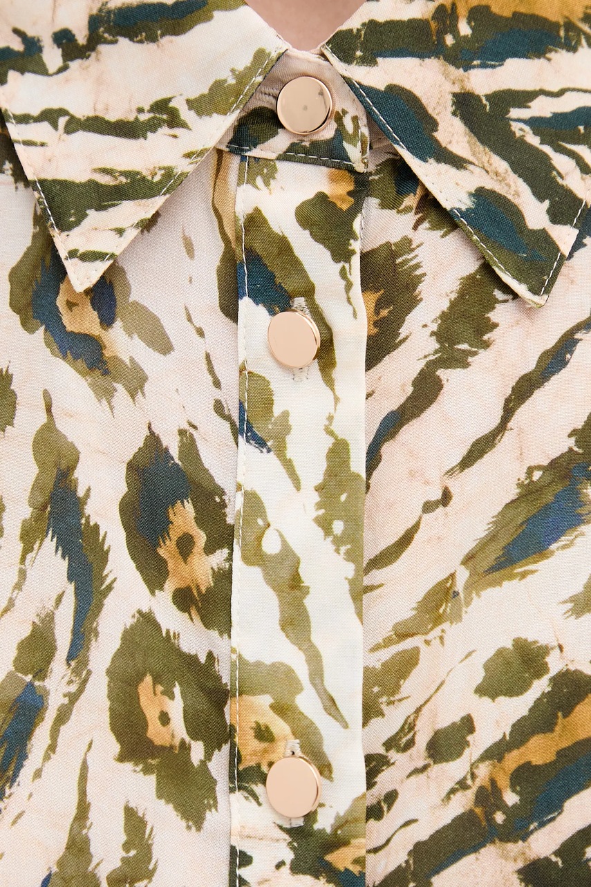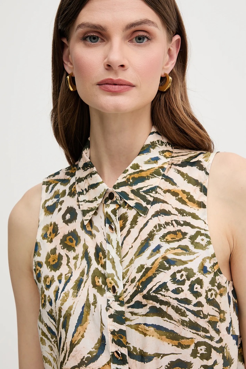 - Koszula w fasonie relaxed charakteryzuje się luźnym krojem, zapewnia komfort i nie krępuje ruchów. - Zapięcie na guziki umożliwia łatwe zakładanie i zdejmowanie. - Model bez rękawów. - Długość: 75 cm. - Szerokość pod pachami: 43 cm. - Wymiary podane dla rozmiaru: 36.