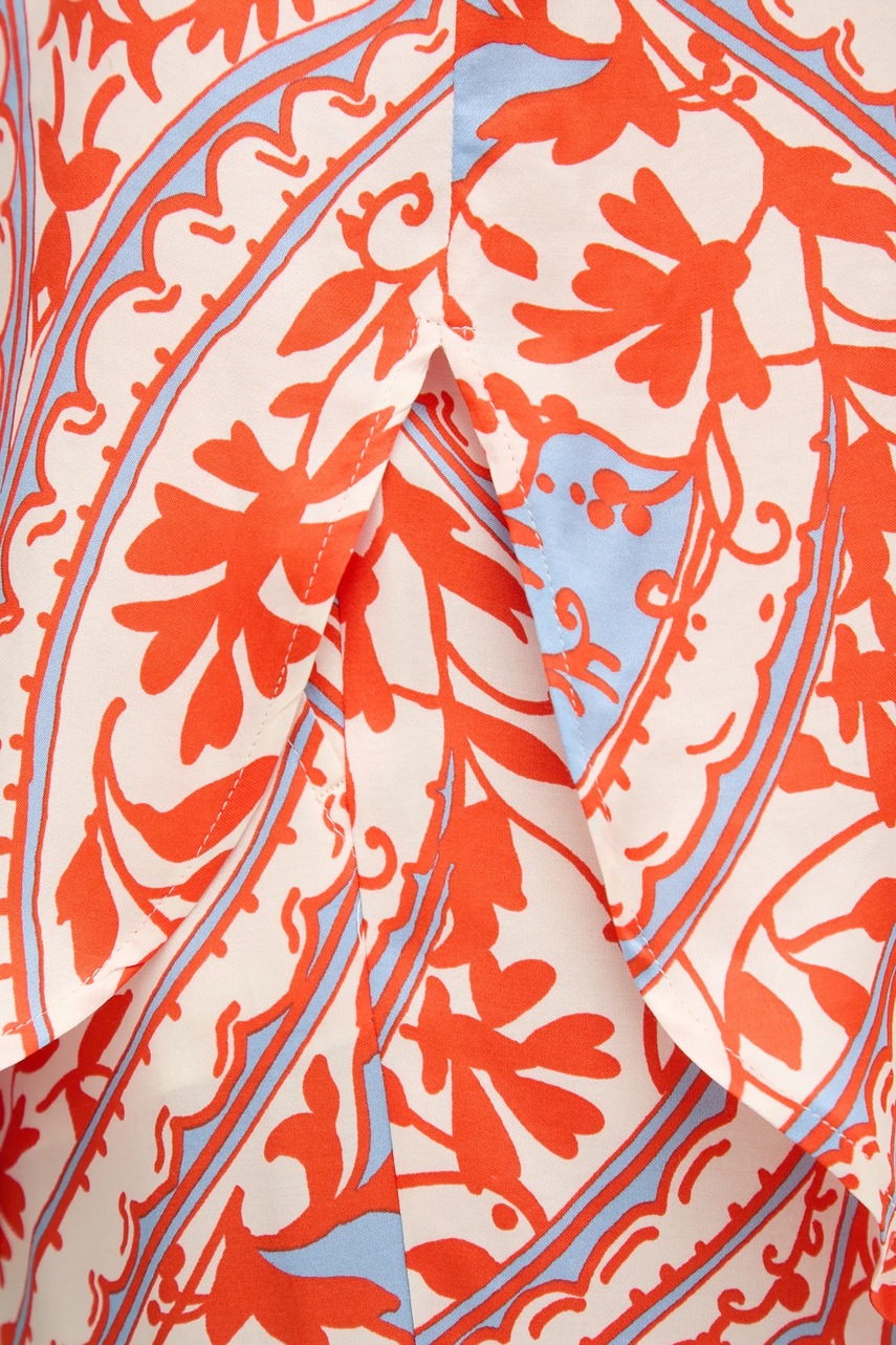 - Luźny fason. - Zapięcie na guziki. - Ozdobne rozcięcia po bokach koszuli. - Wzorzysta tkanina. - Długość: 73 cm. - Szerokość pod pachami: 48 cm. - Wymiary podane dla rozmiaru: 36.