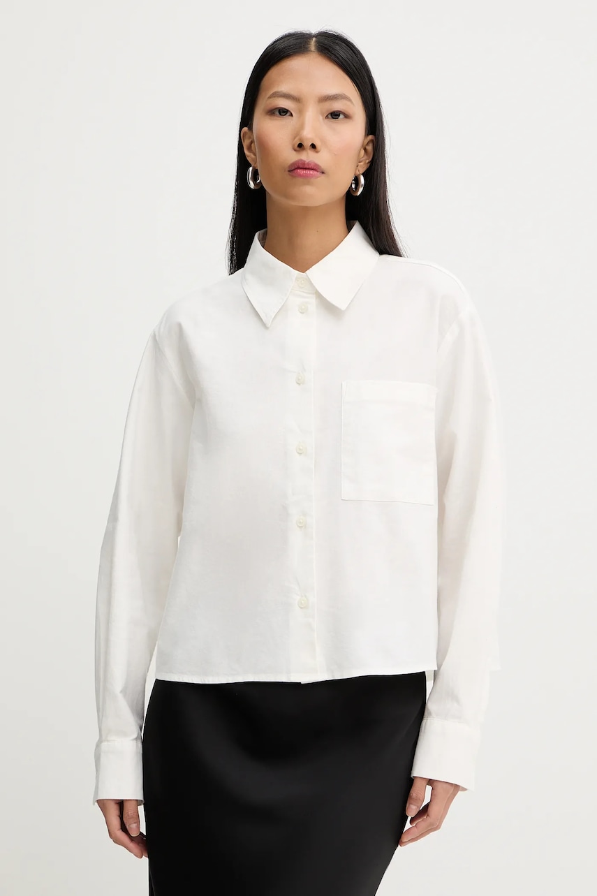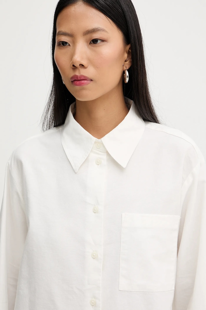 Marc O'Polo koszula bawełniana damska kolor beżowy relaxed z kołnierzykiem klasycznym 5000007466