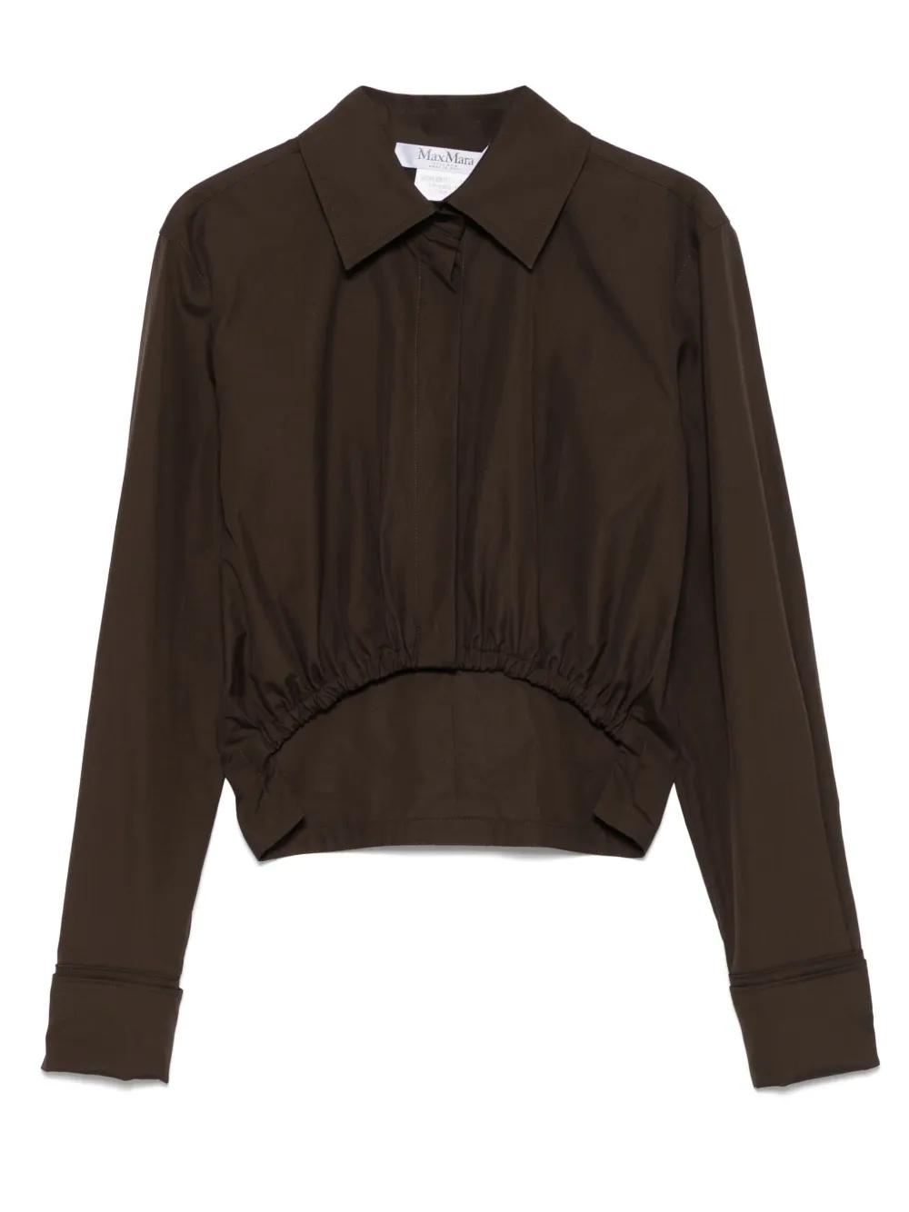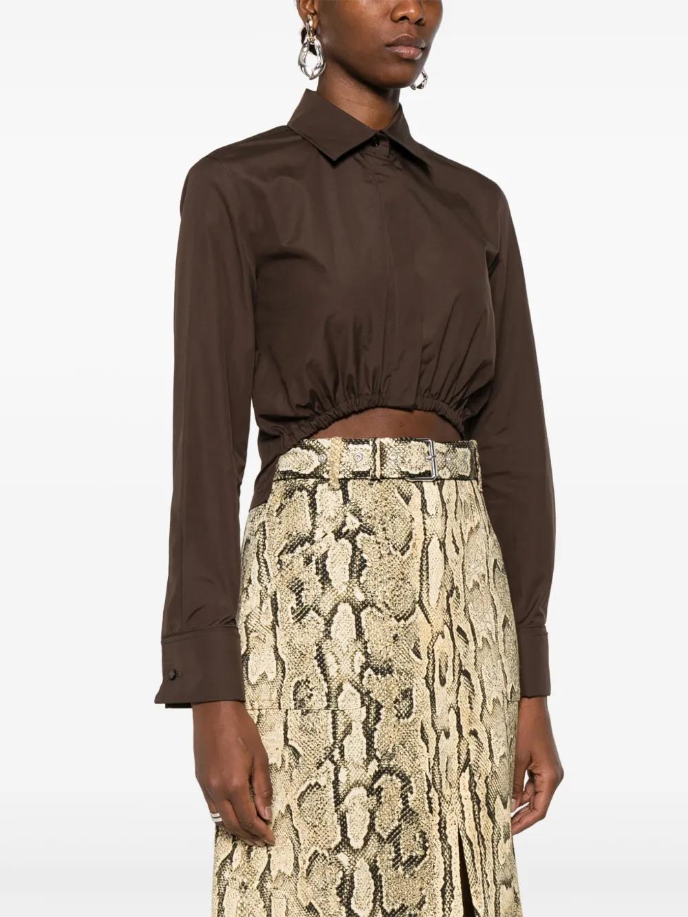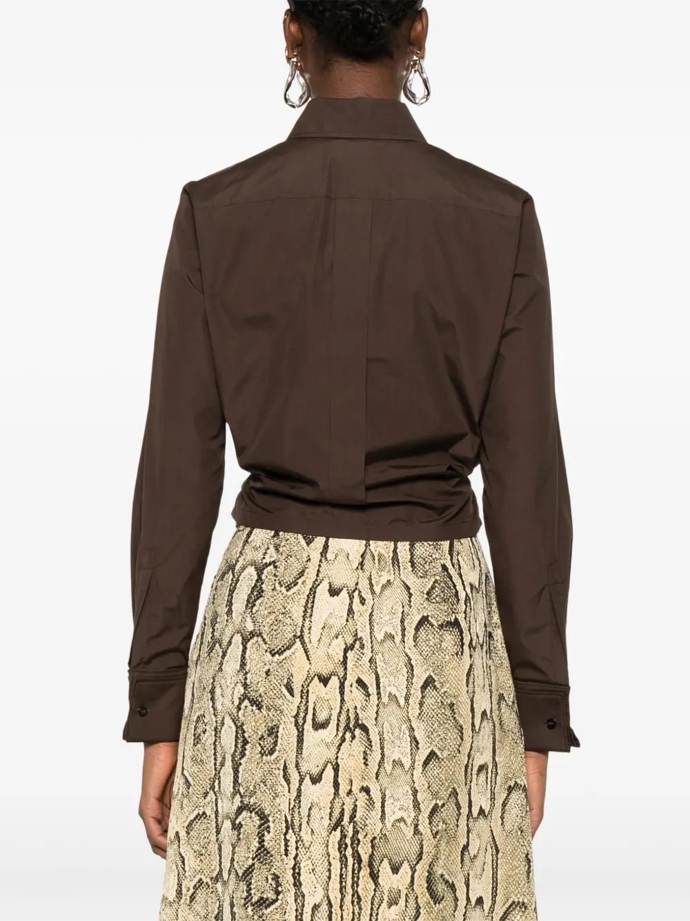 chocolate brown concealed front button fastening long sleeves buttoned cuffs elasticated hem