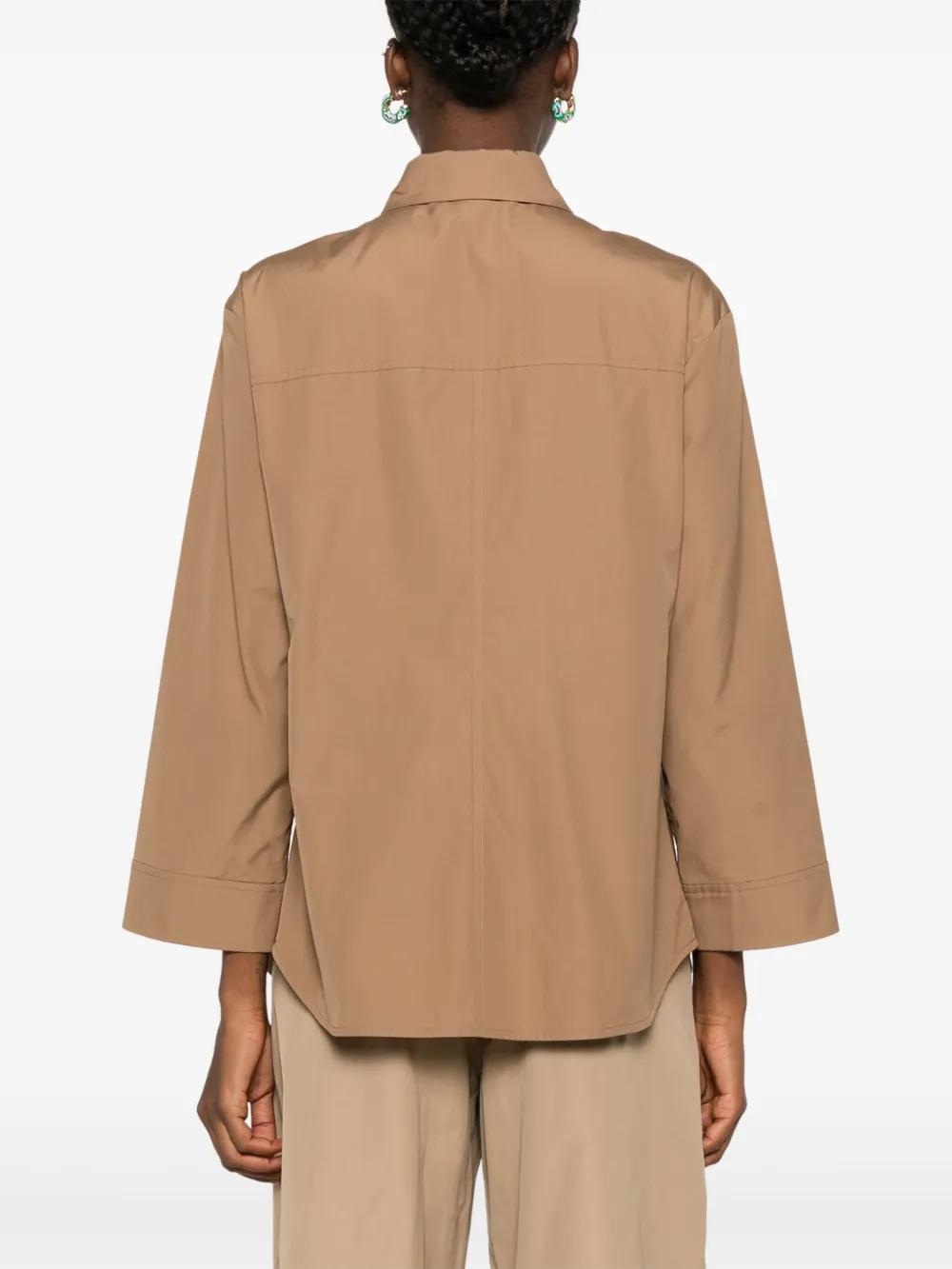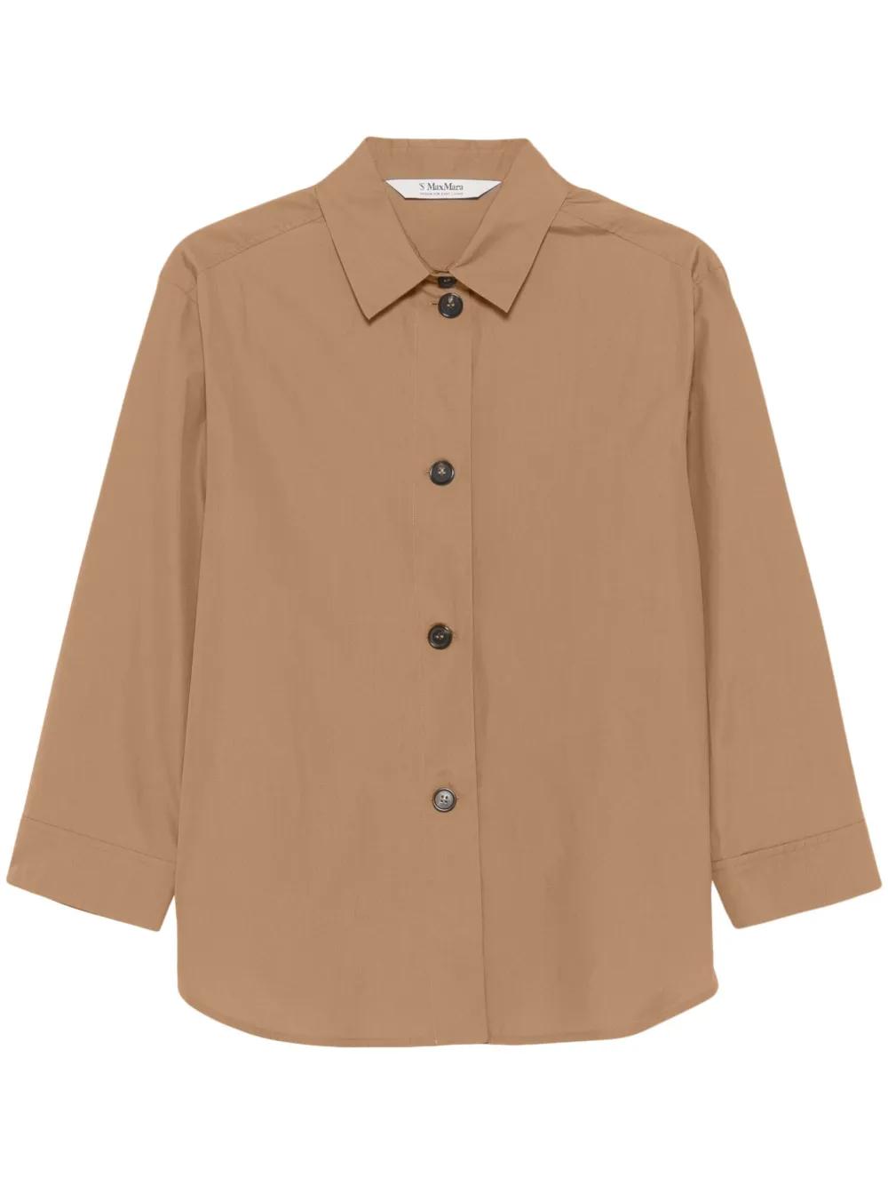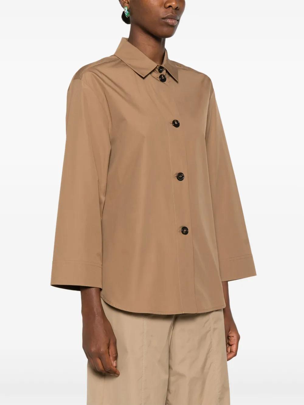 light brown cotton poplin texture front button fastening spread collar long sleeves curved hem
