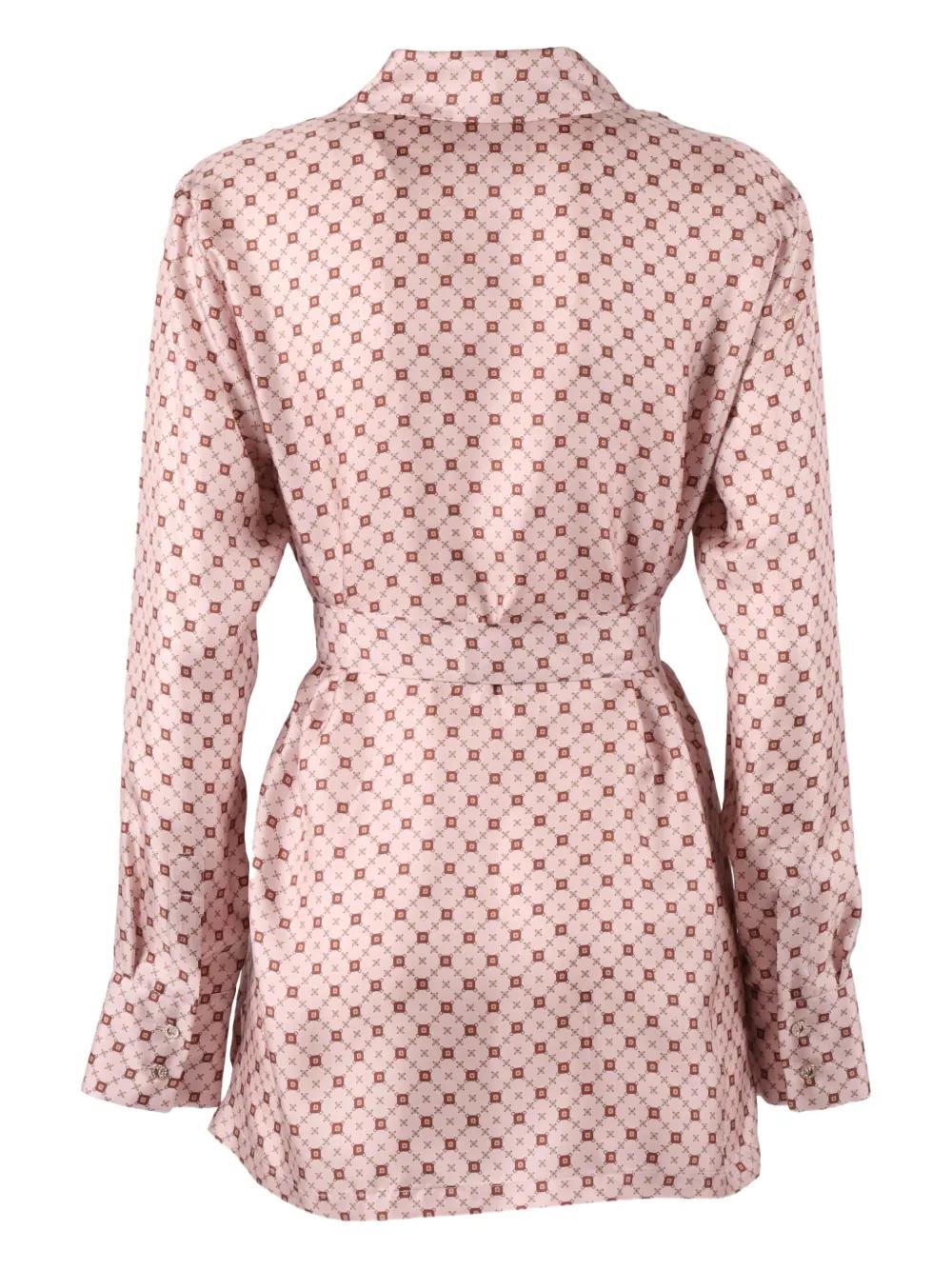 rose geometric print belt button fastening long sleeves buttoned cuffs