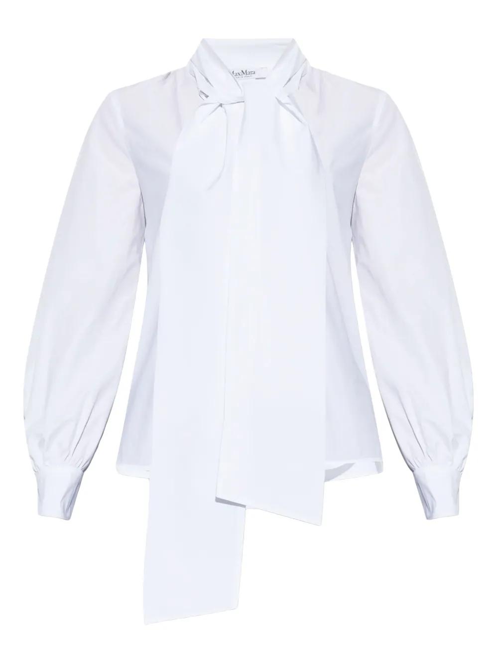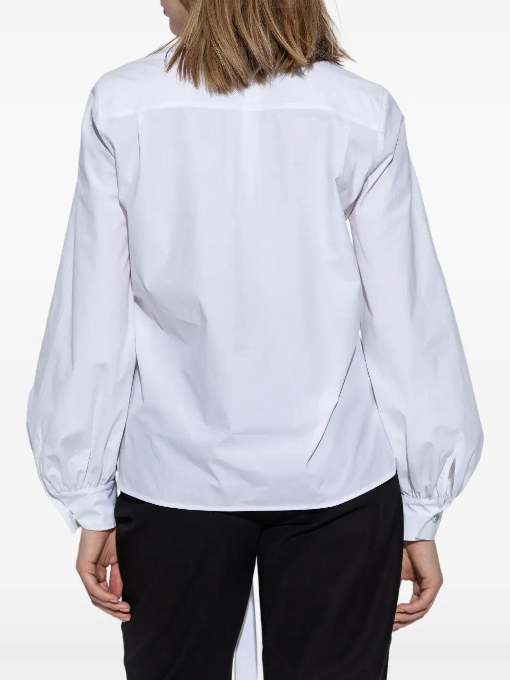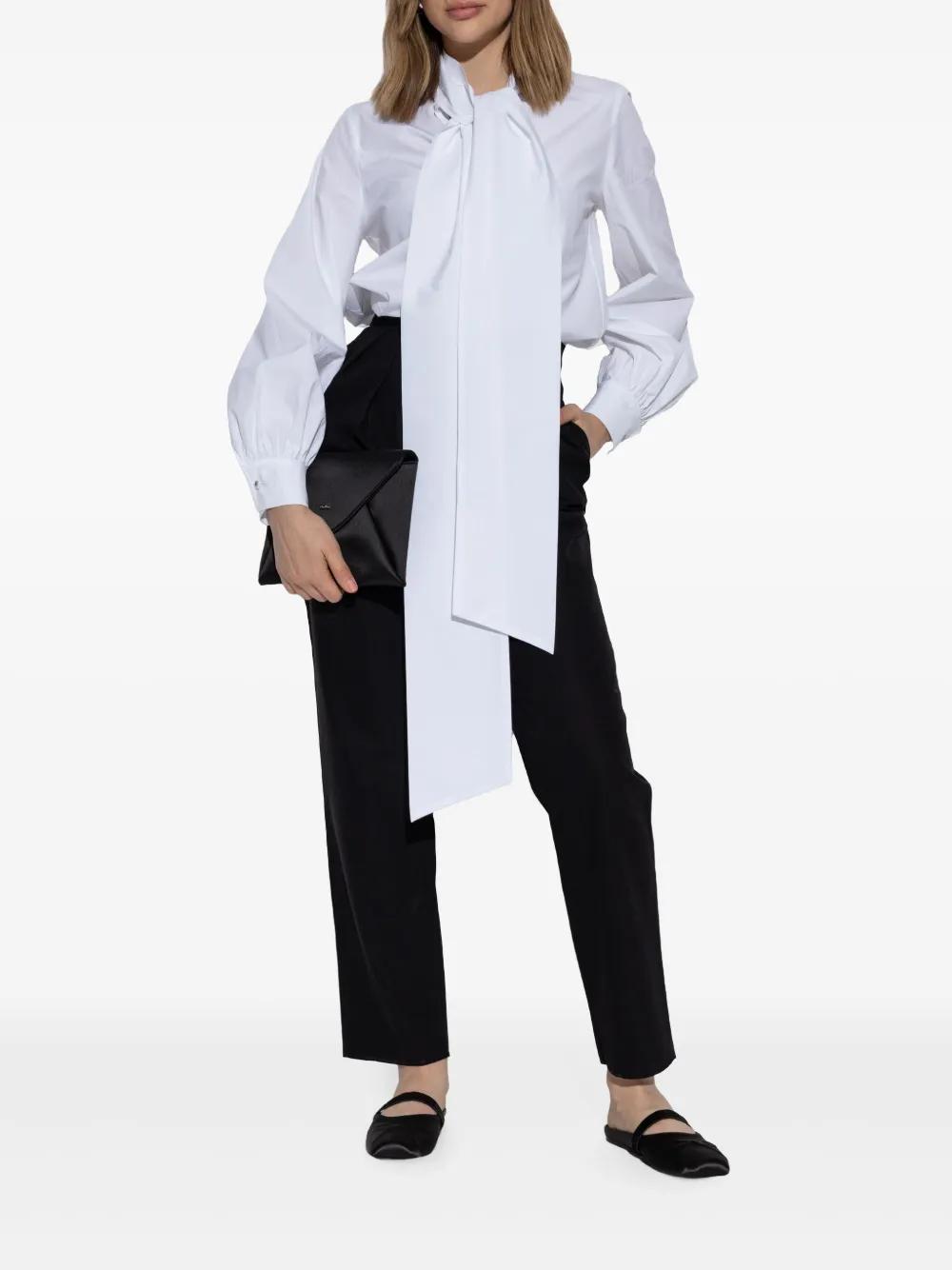 white long puff sleeves bow-tie neckline gathered shoulder seams buttoned cuffs