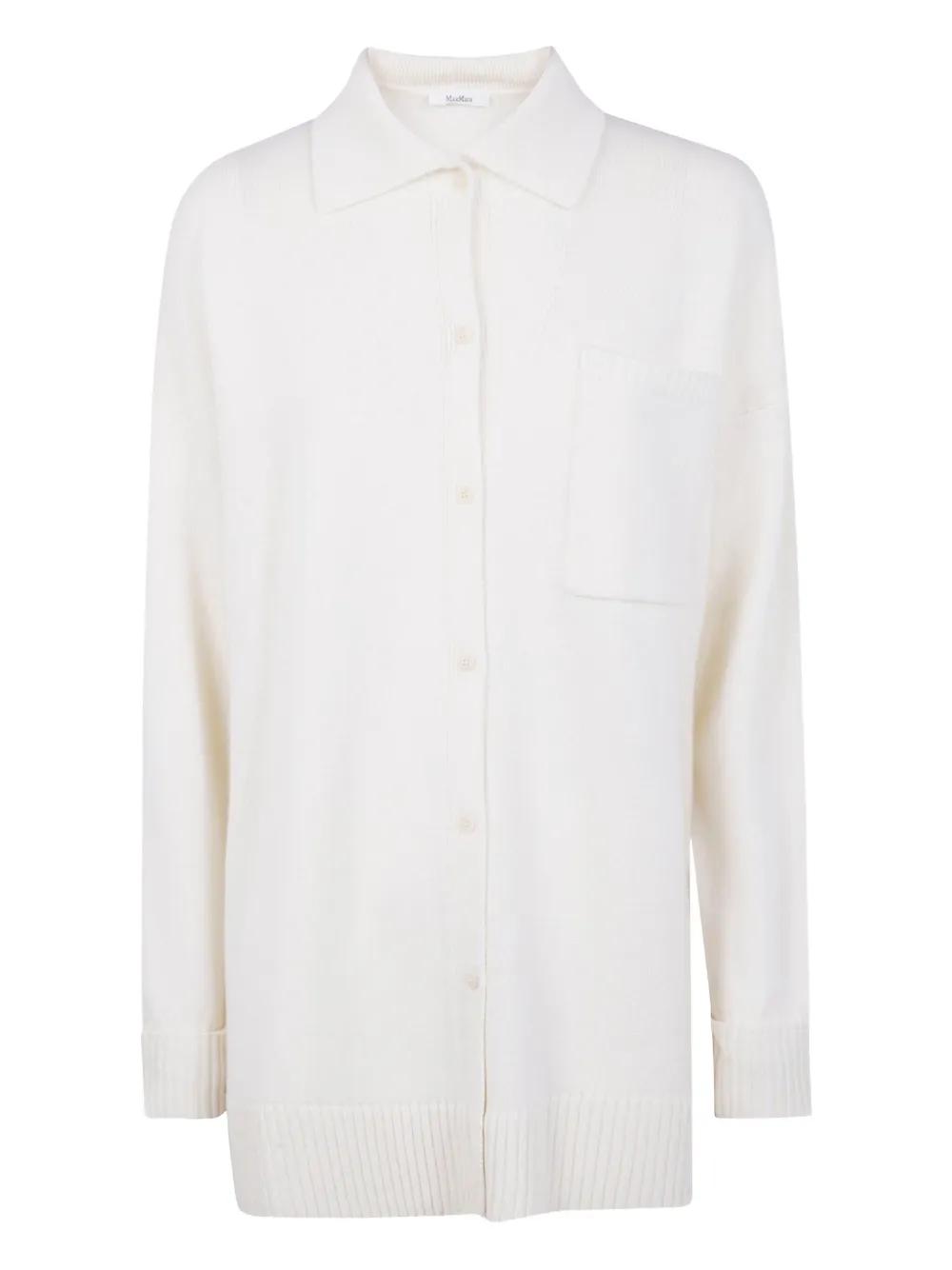 white ribbed hem collared neckline button fastening patch pocket long sleeves