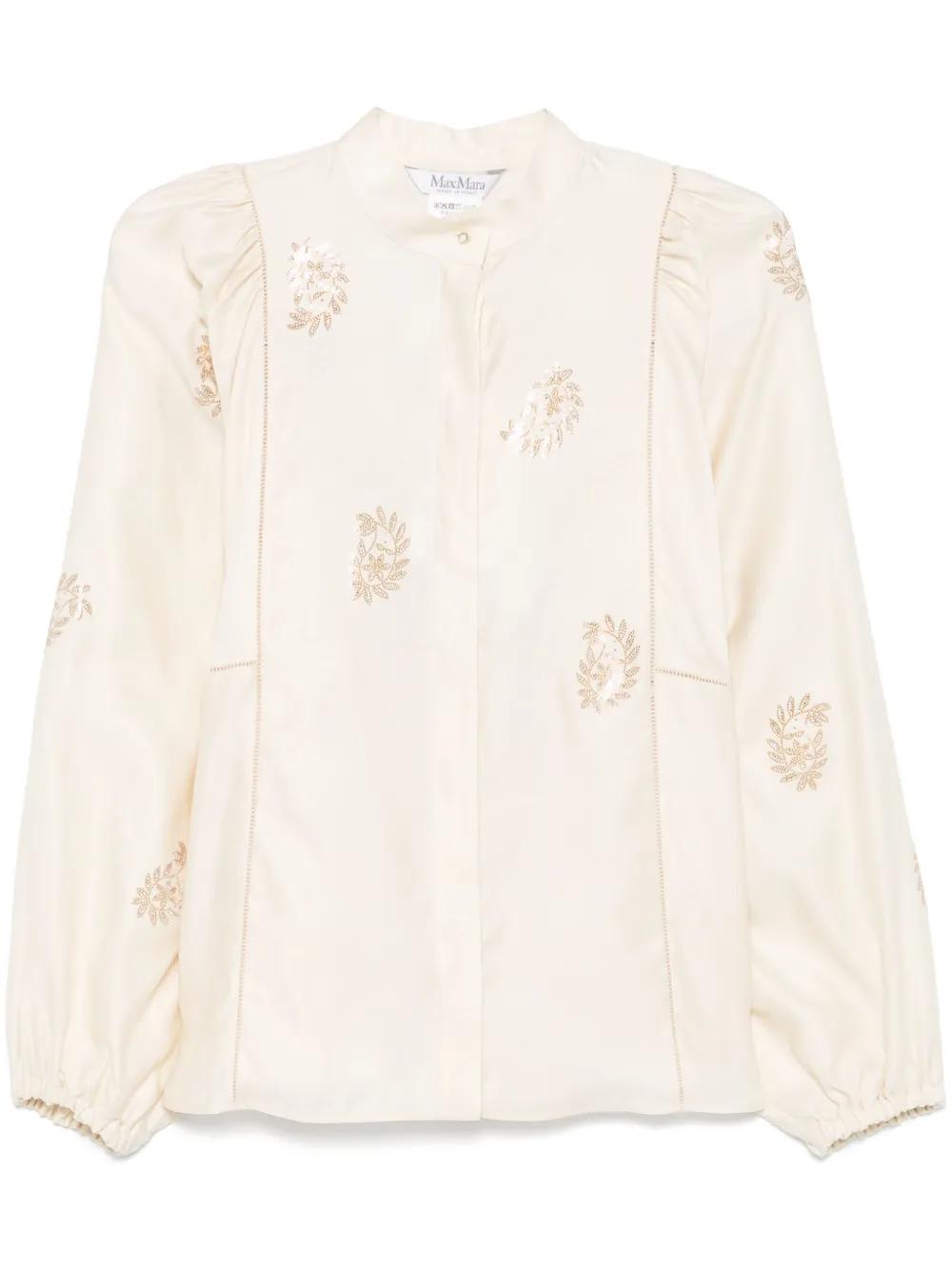 light beige concealed front button fastening elasticated cuffs crystal embellishment side slits