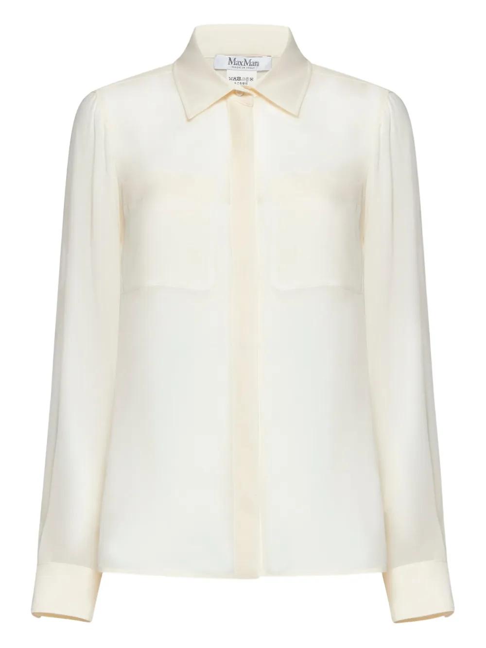 Max Mara embroidered-pocket silk shirt - Neutrals