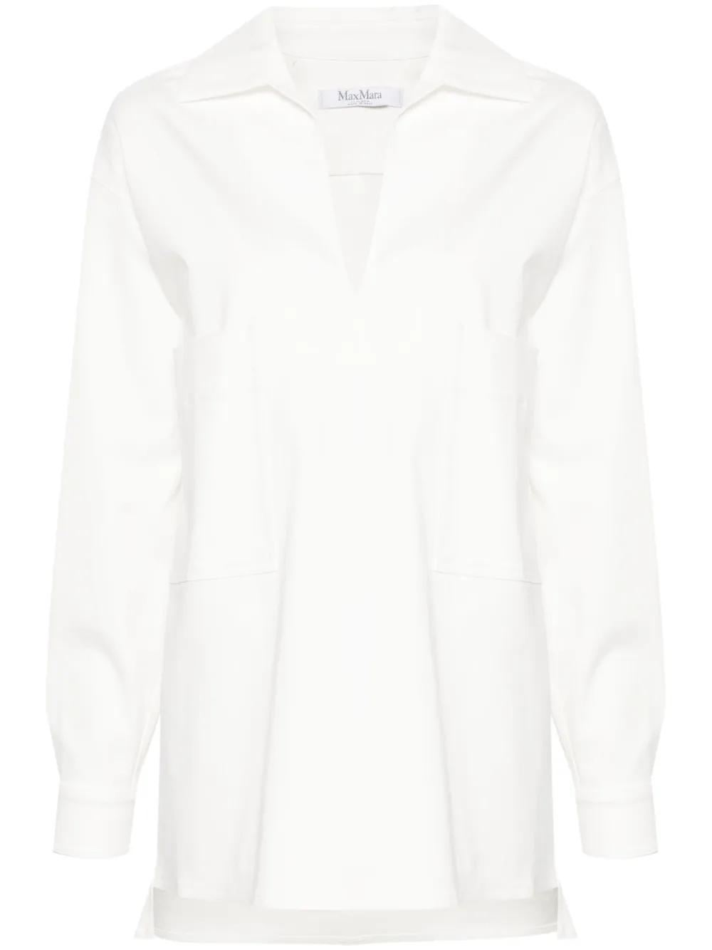 Max Mara gabardine-weave V-neck shirt - White