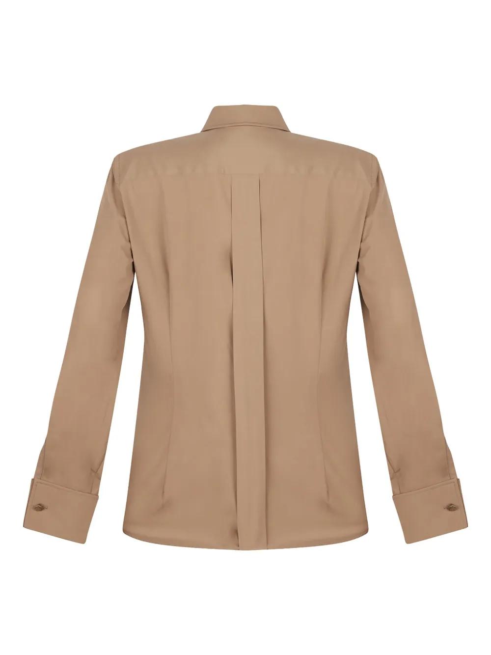 light brown front button fastening buttoned cuffs pleat detailing long sleeves