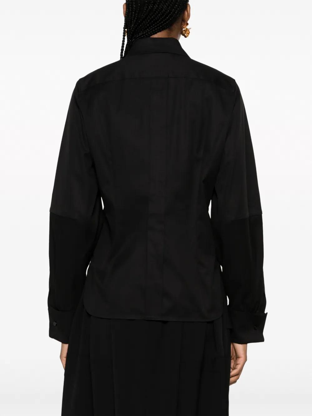 black stretch-cotton classic collar concealed front fastening long sleeves buttoned cuffs fitted waistline straight hem