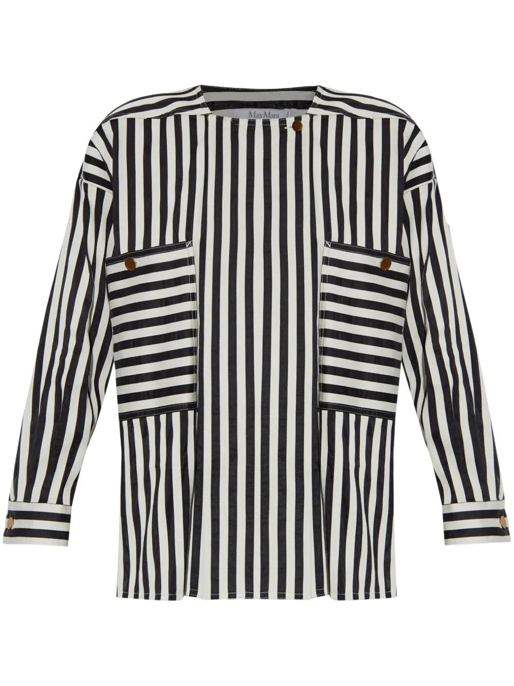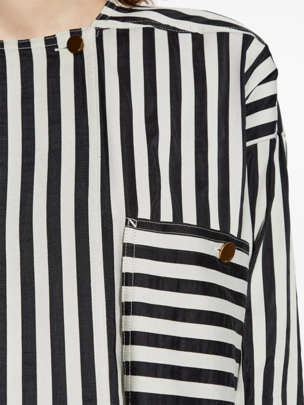 white double-breasted button fastening two chest patch pockets buttoned-cuff sleeves vertical stripe pattern