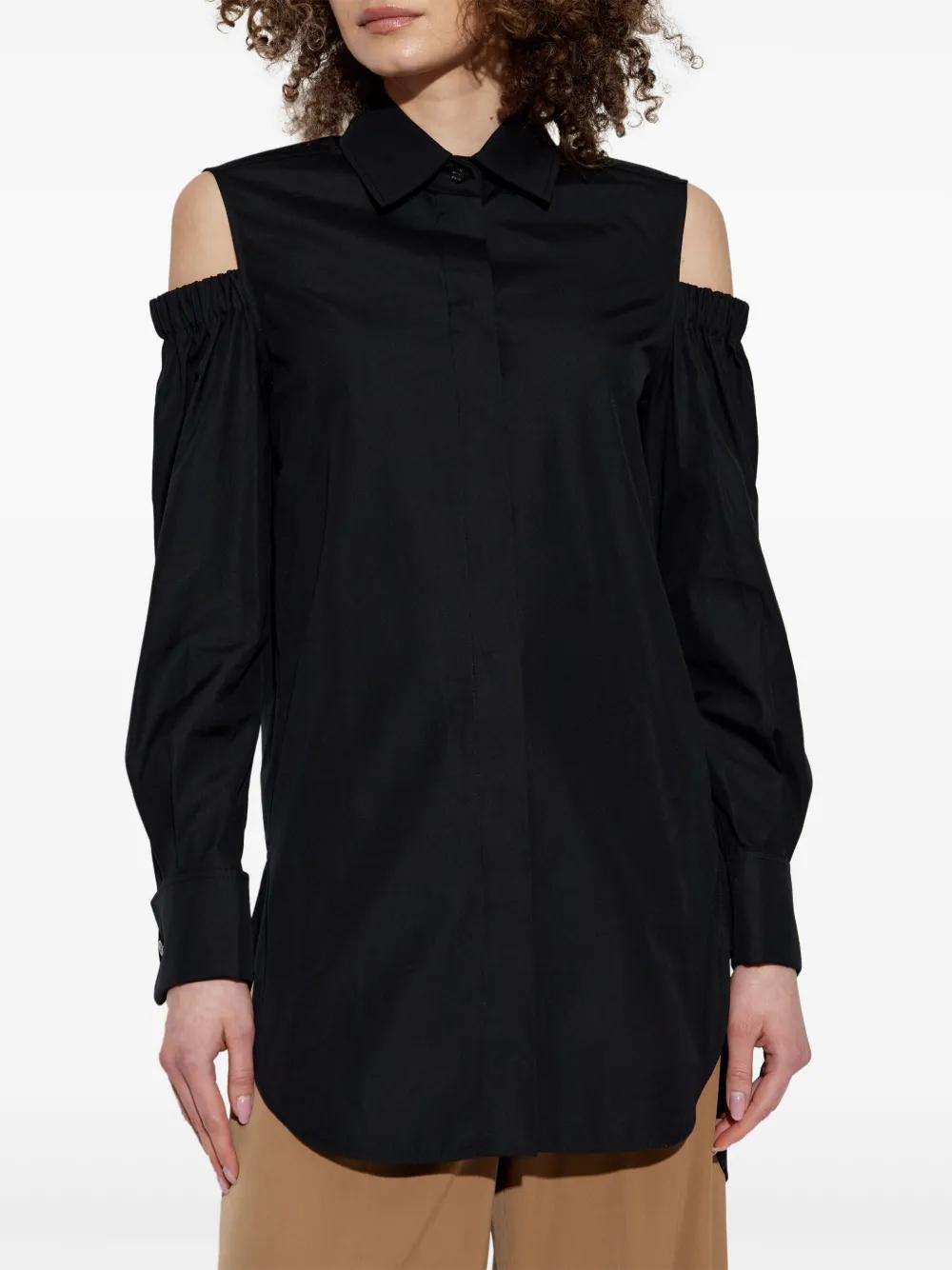 white concealed front button fastening two chest welt pockets adjustable side straps buttoned-cuff sleeves