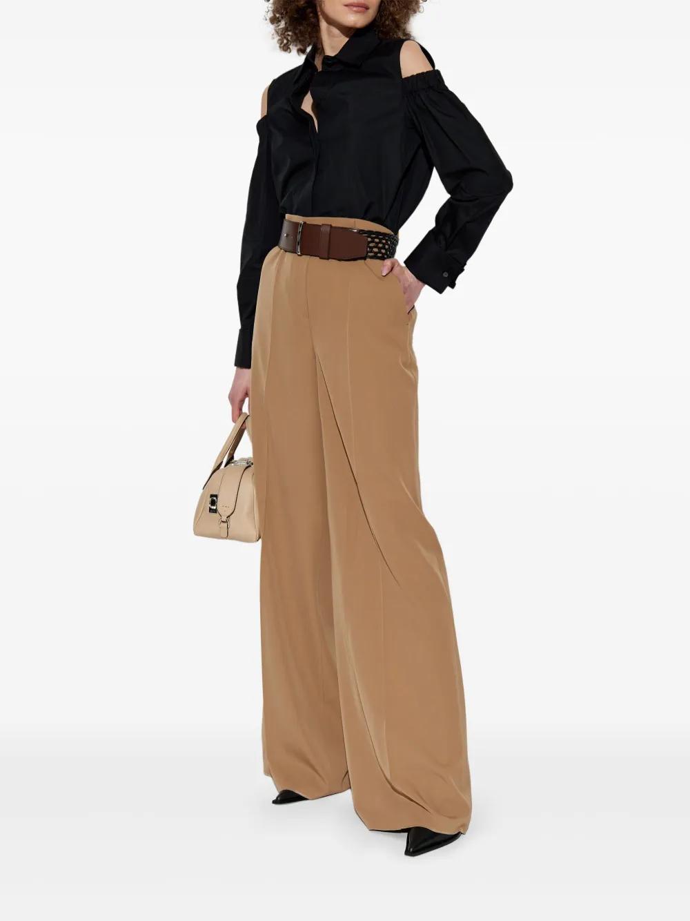 white front button fastening belted waist two chest flap pockets box-pleat detail