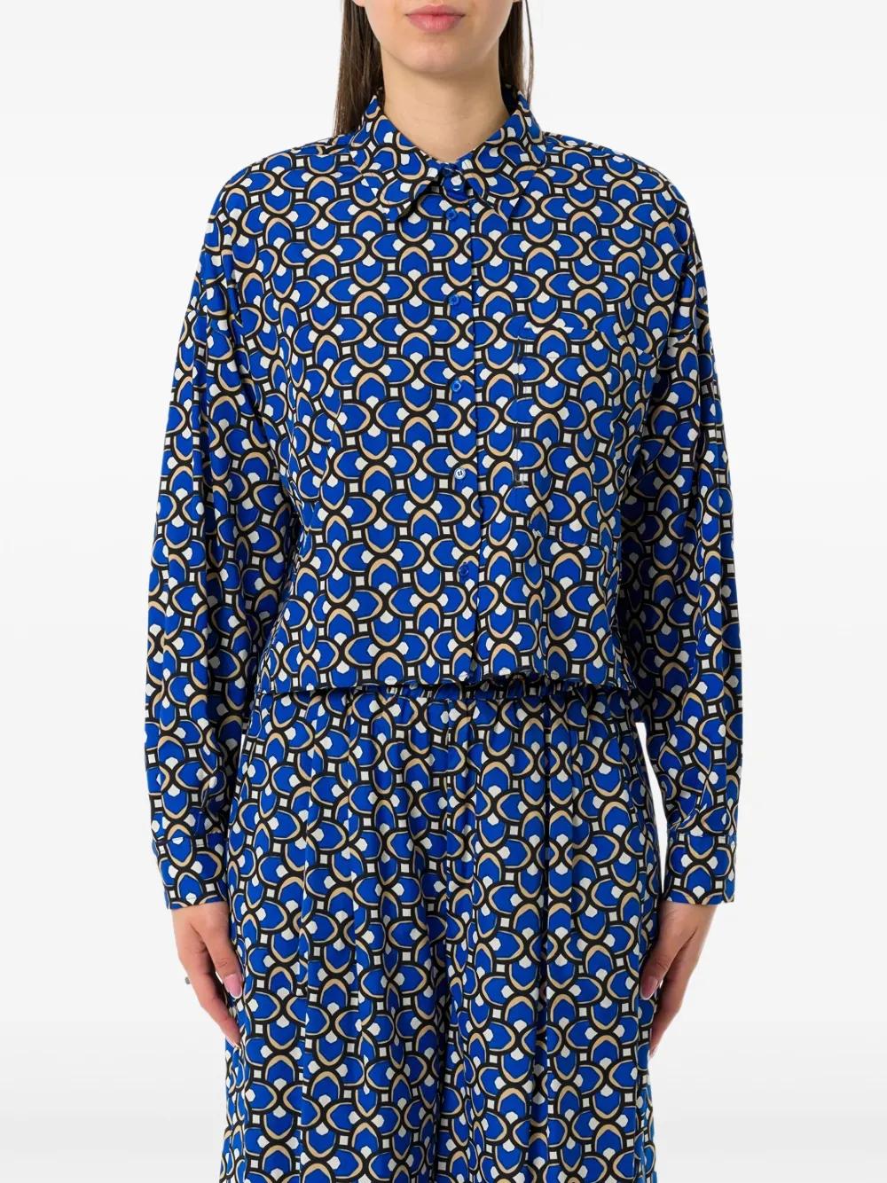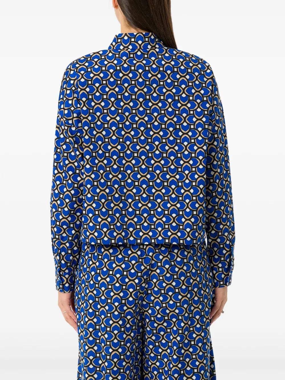 cornflower blue front button fastening buttoned cuffs long sleeves geometric-pattern print