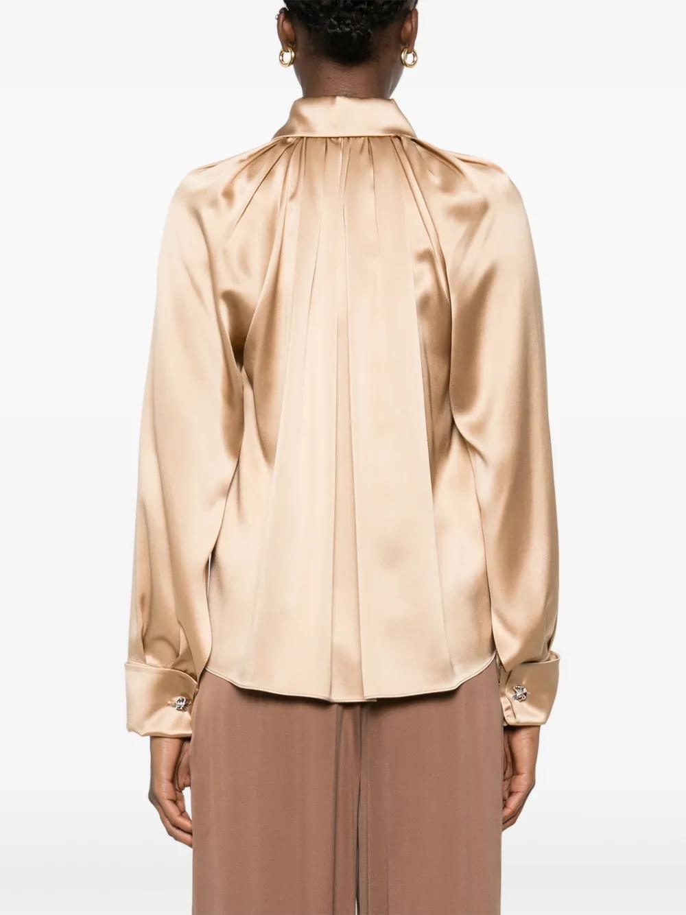 camel brown front button placket French cuffs pleat detailing pointed flat collar