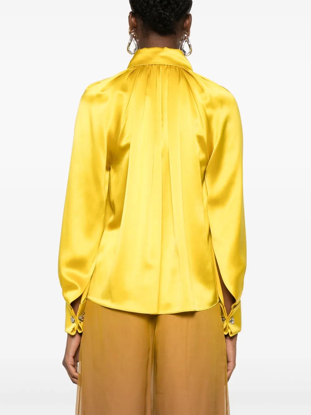 ochre yellow concealed front fastening pointed flat collar long sleeves buttoned cuffs