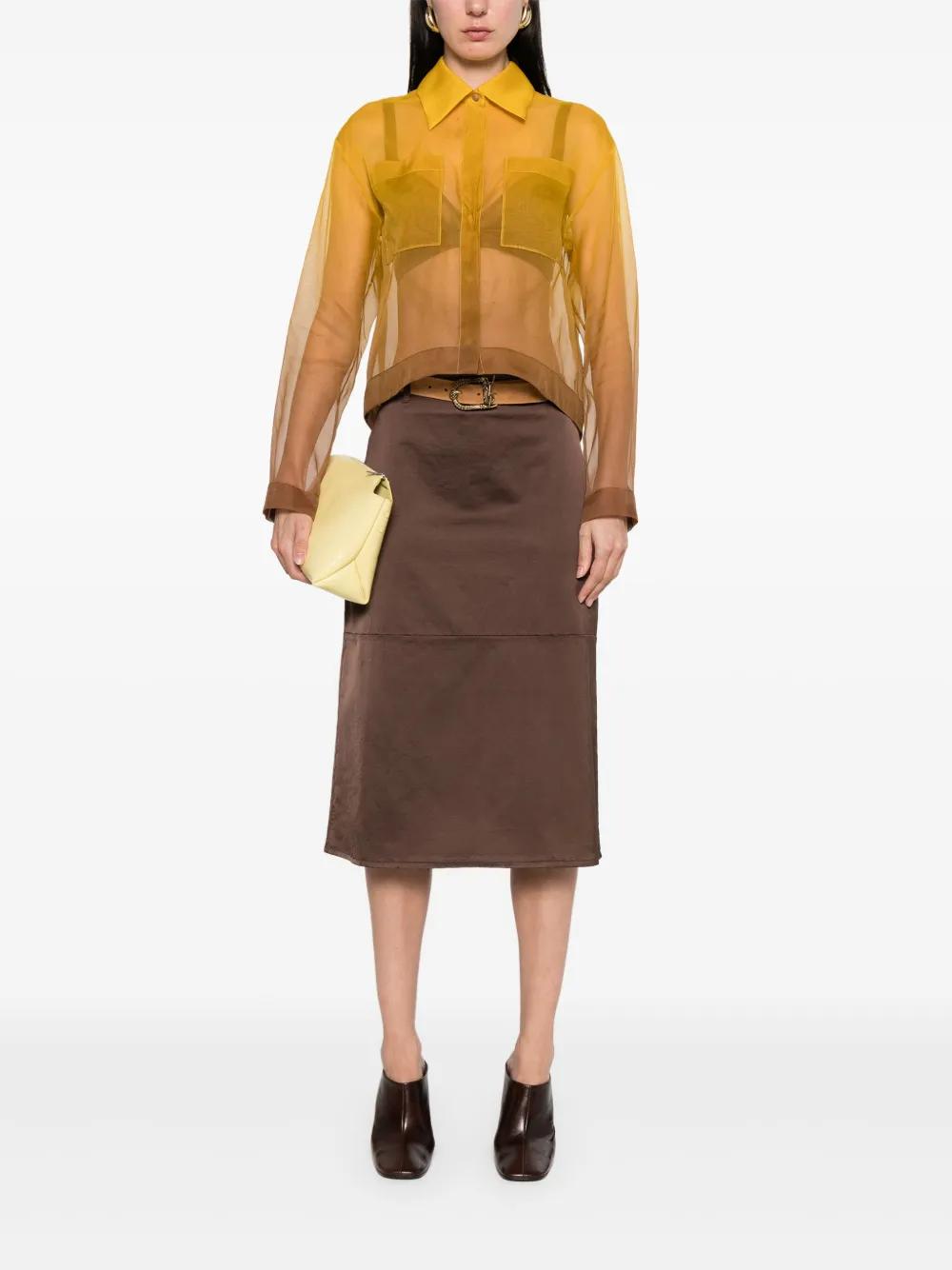 ochre yellow concealed front button fastening buttoned cuffs two chest patch pockets pleat detailing
