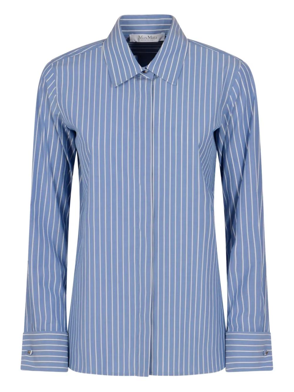 light blue vertical stripes long sleeves button front fastening buttoned cuffs