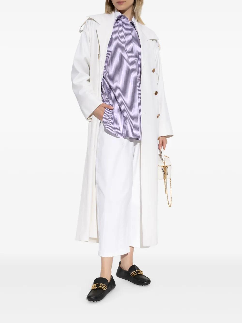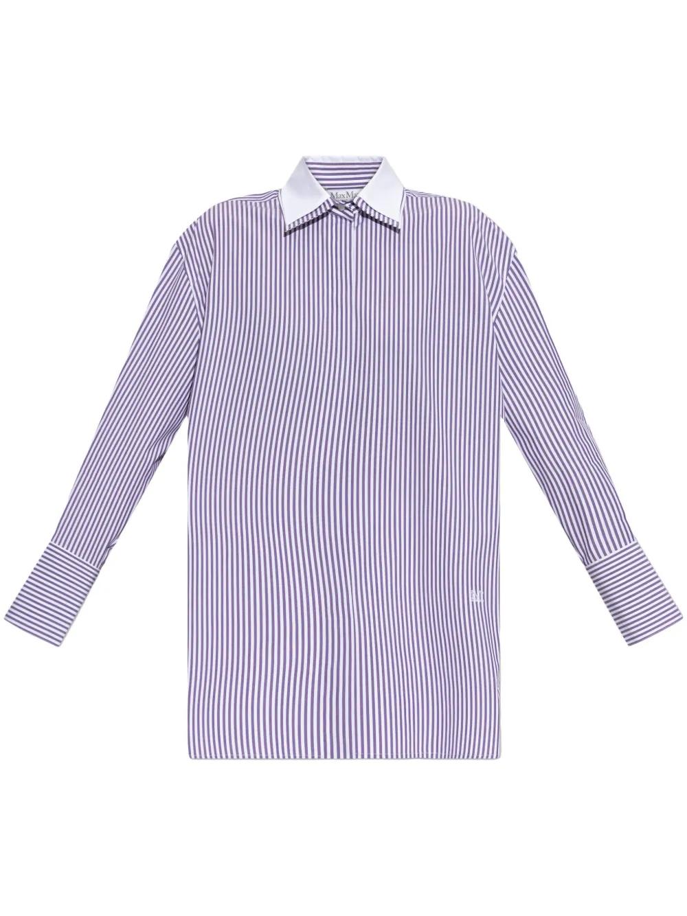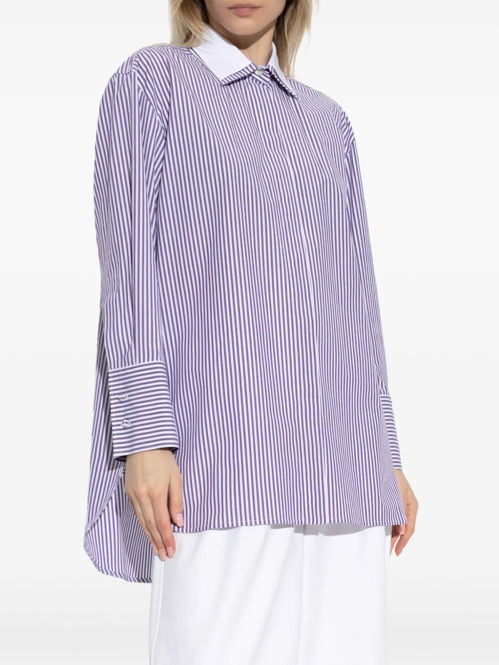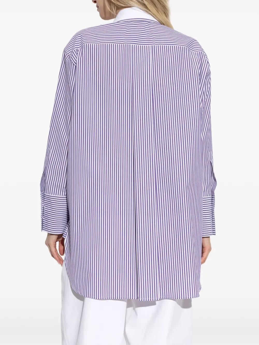 white and purple long sleeves collared neckline vertical stripe pattern buttoned cuffs relaxed fit