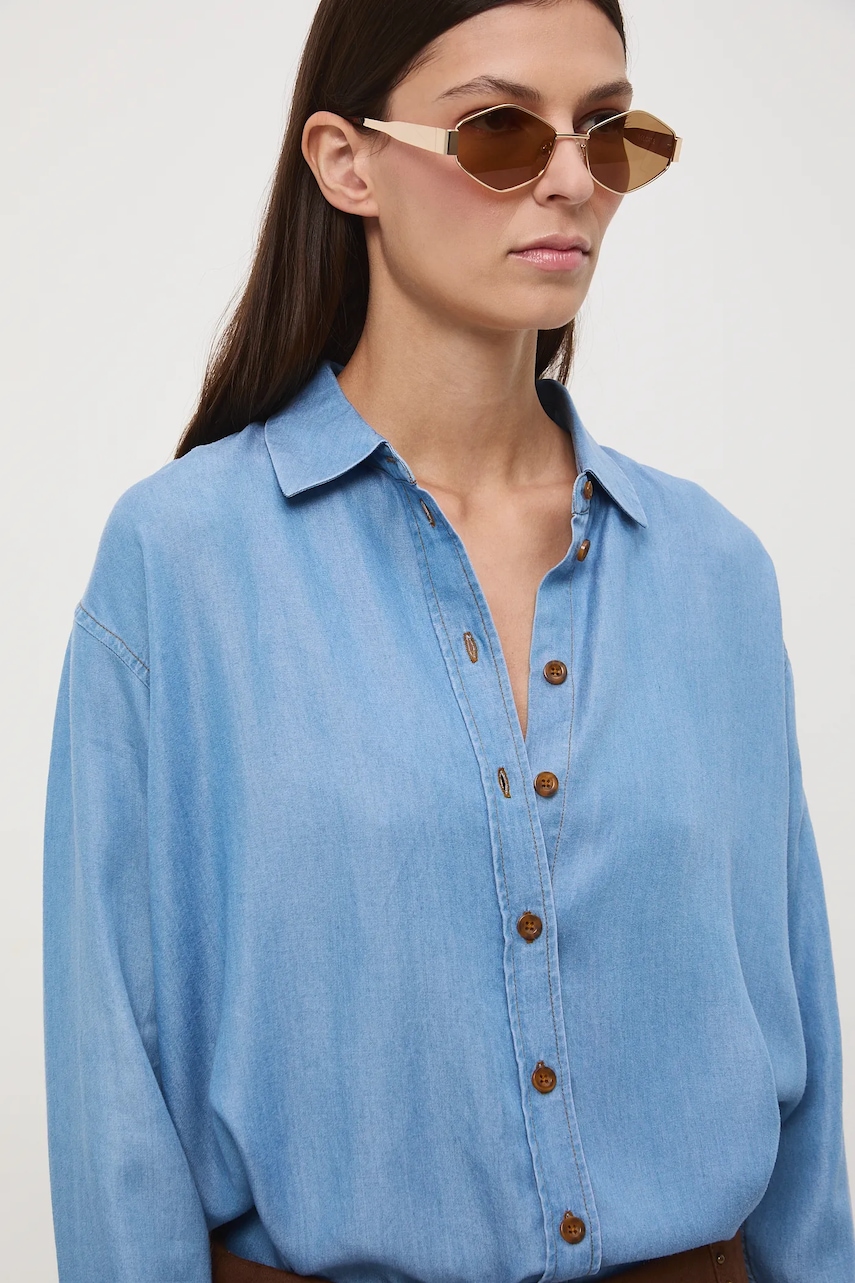 Medicine koszula damska kolor niebieski relaxed z kołnierzykiem klasycznym