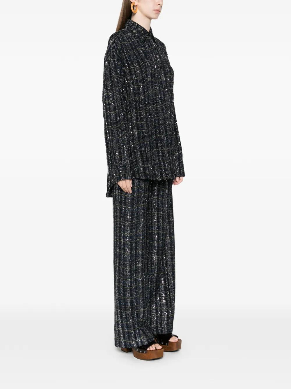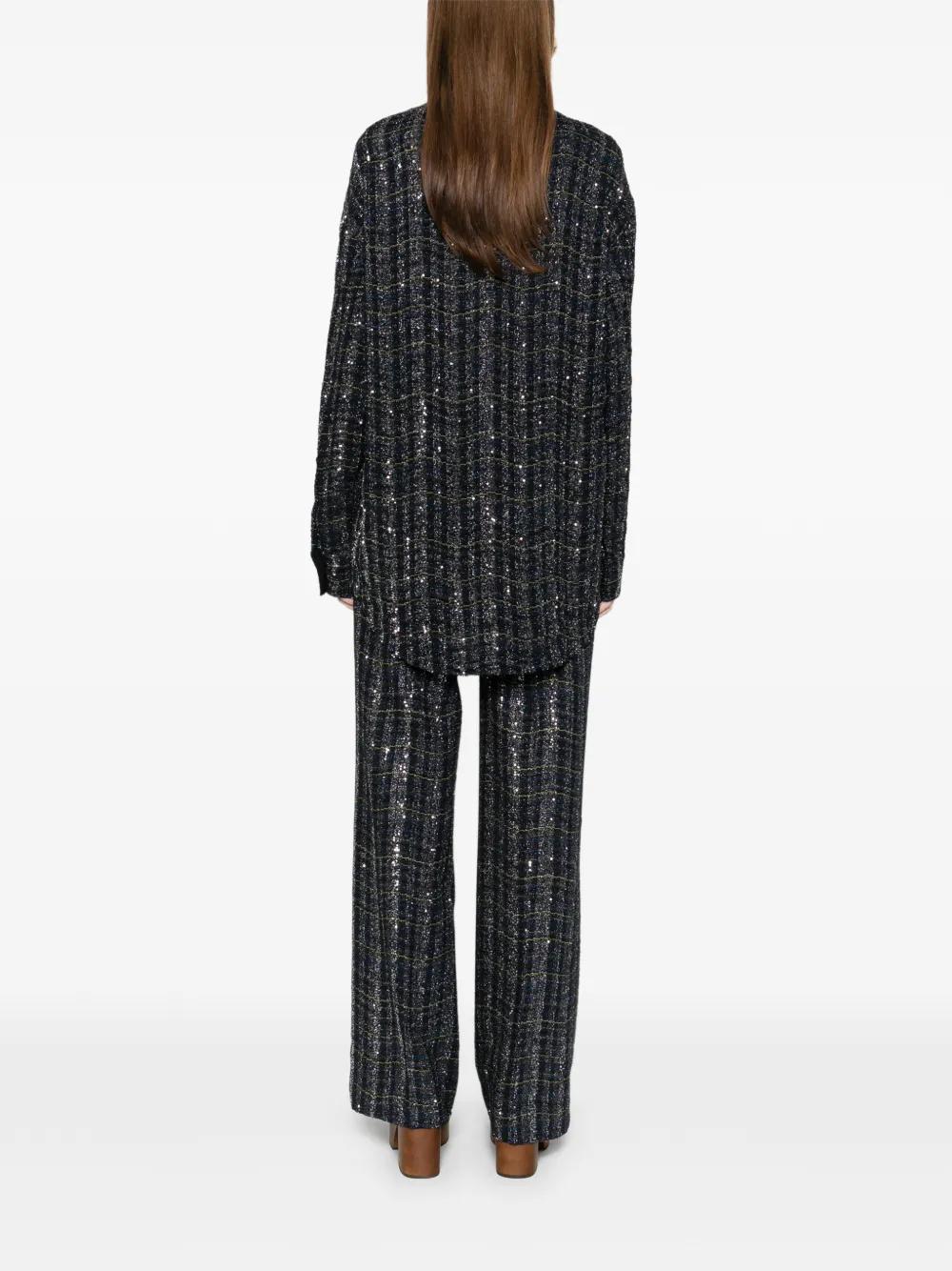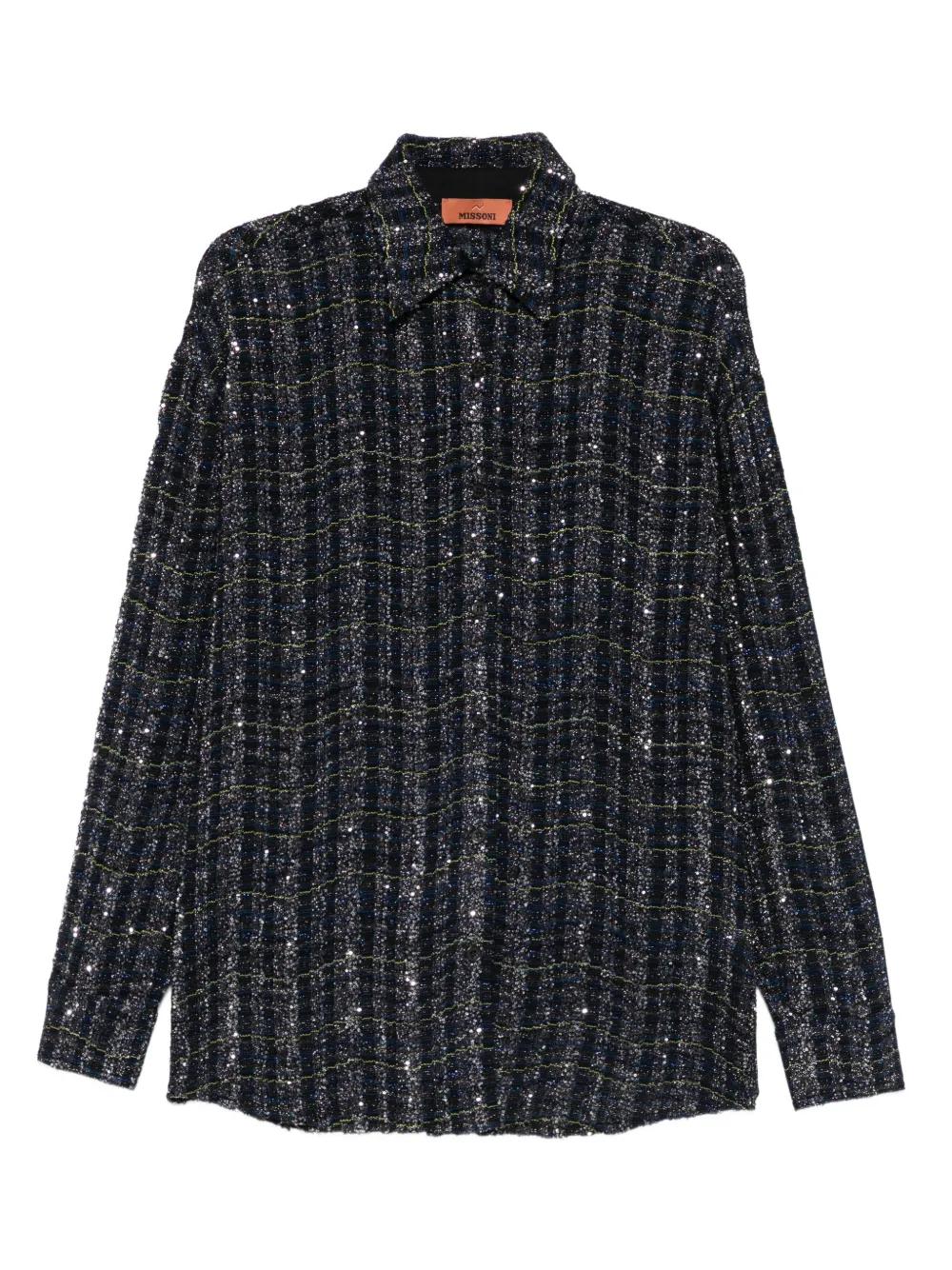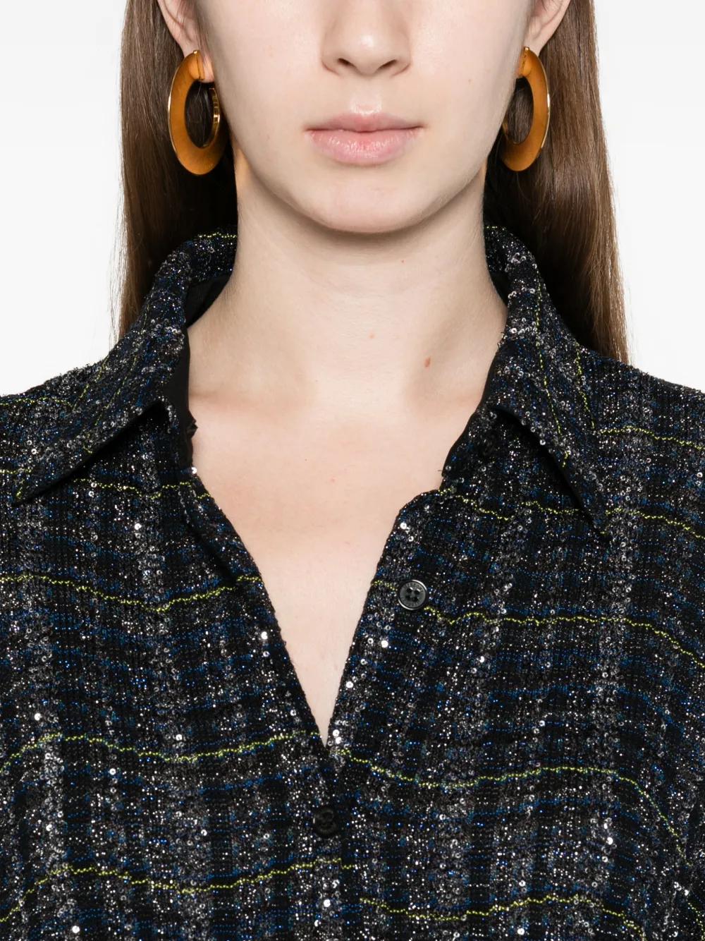 blue patterned sequin embellishment long sleeves button fastening classic collar
