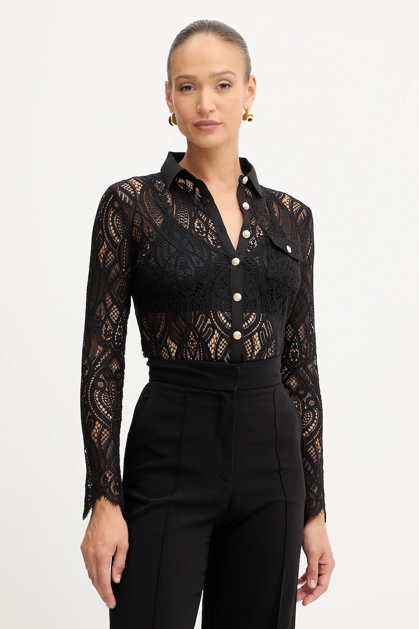 Morgan koszula damska kolor czarny regular z kołnierzykiem klasycznym TLILA