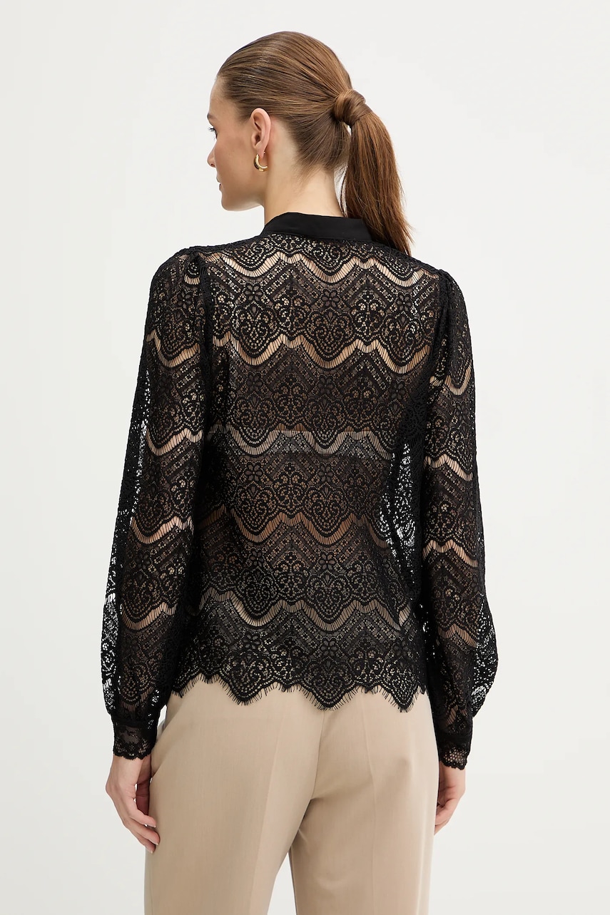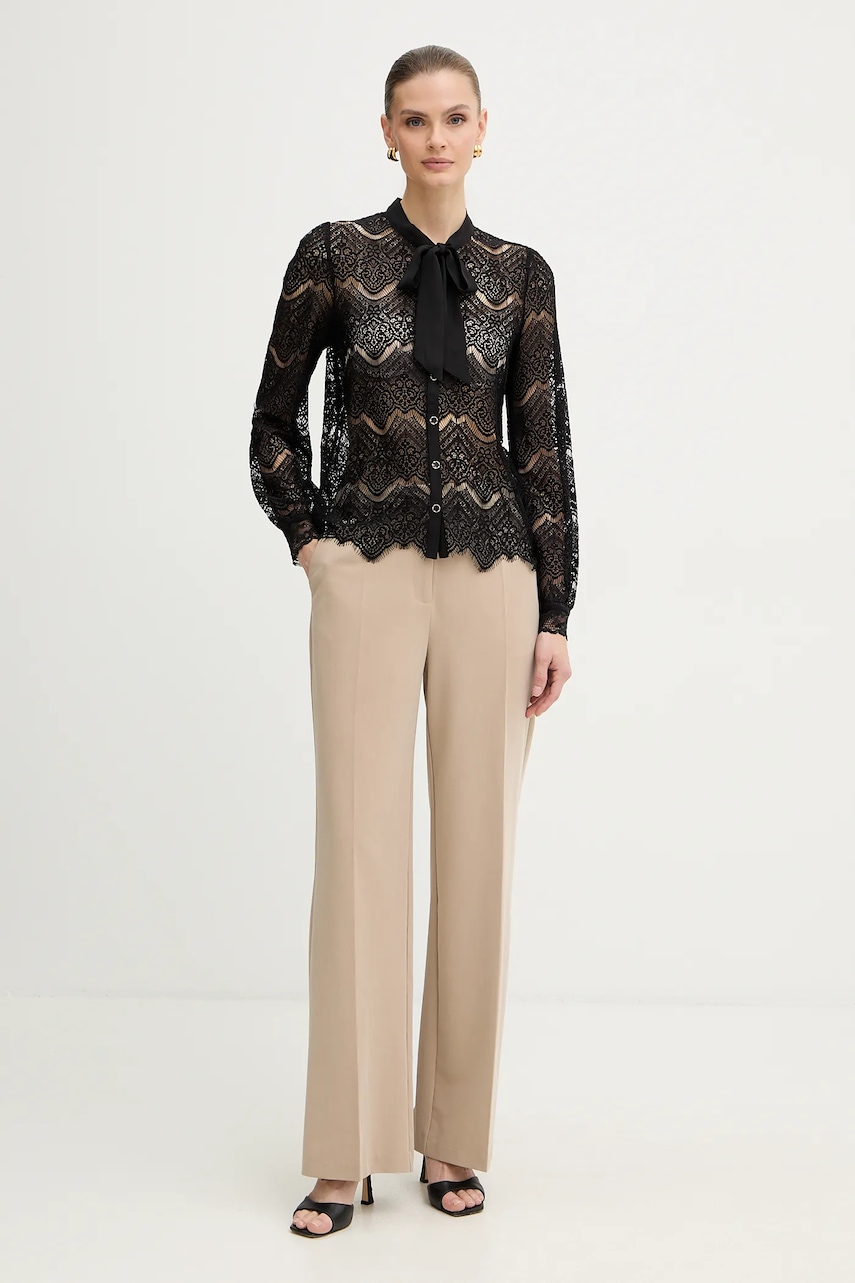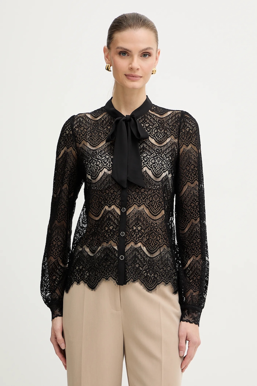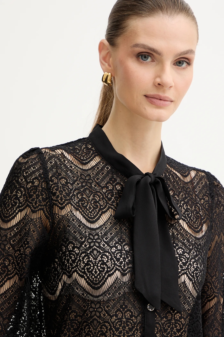 Morgan koszula damska kolor czarny regular z wiązanym dekoltem TGRAPHO