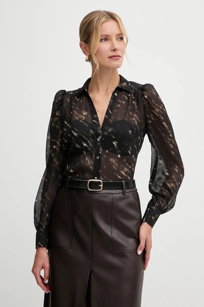 Morgan koszula damska kolor czarny slim z kołnierzykiem klasycznym COOD.F