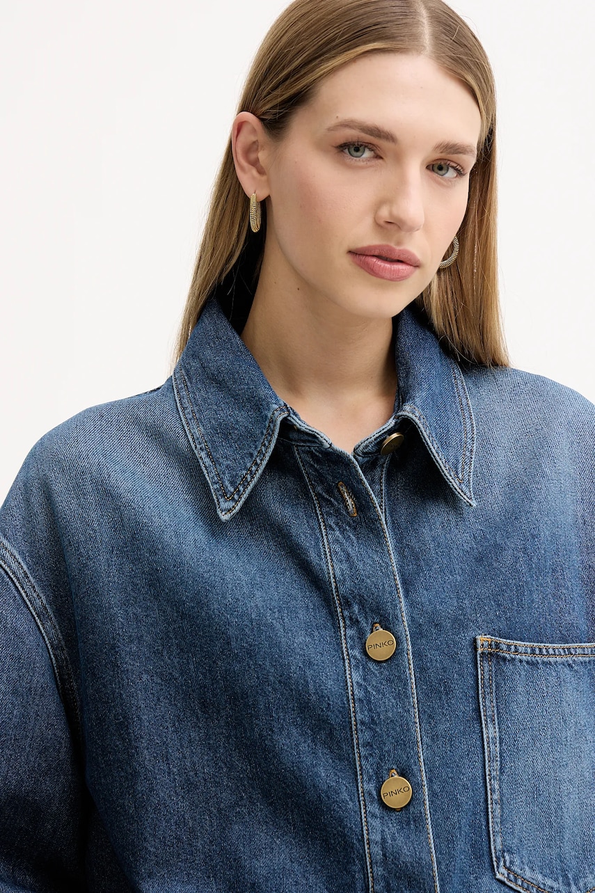 Pinko koszula jeansowa damska kolor niebieski relaxed z kołnierzykiem klasycznym 105669 A2TX