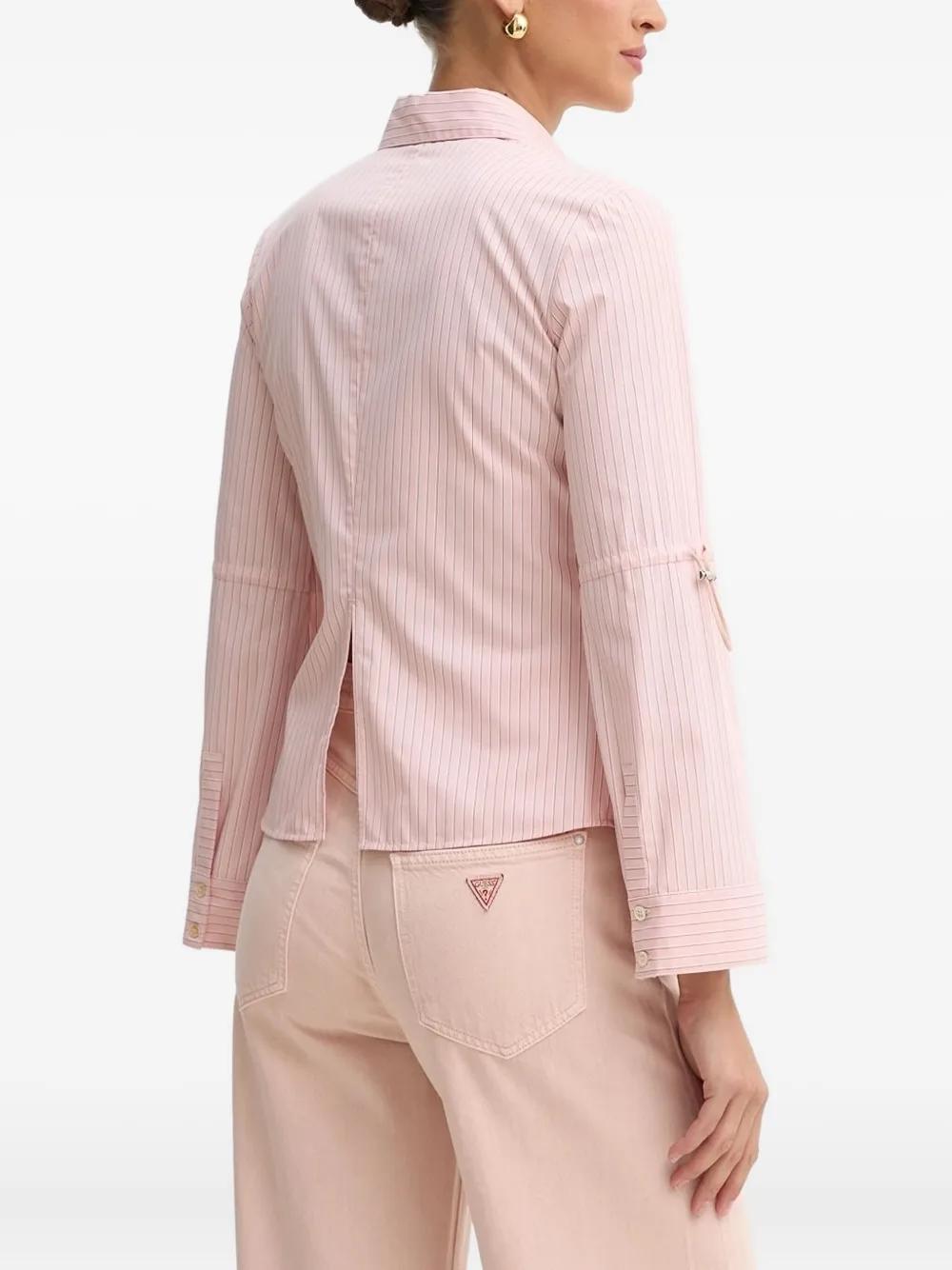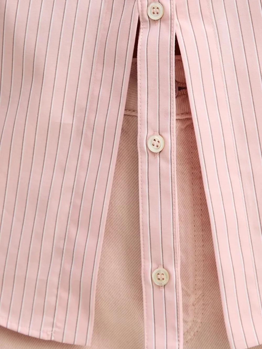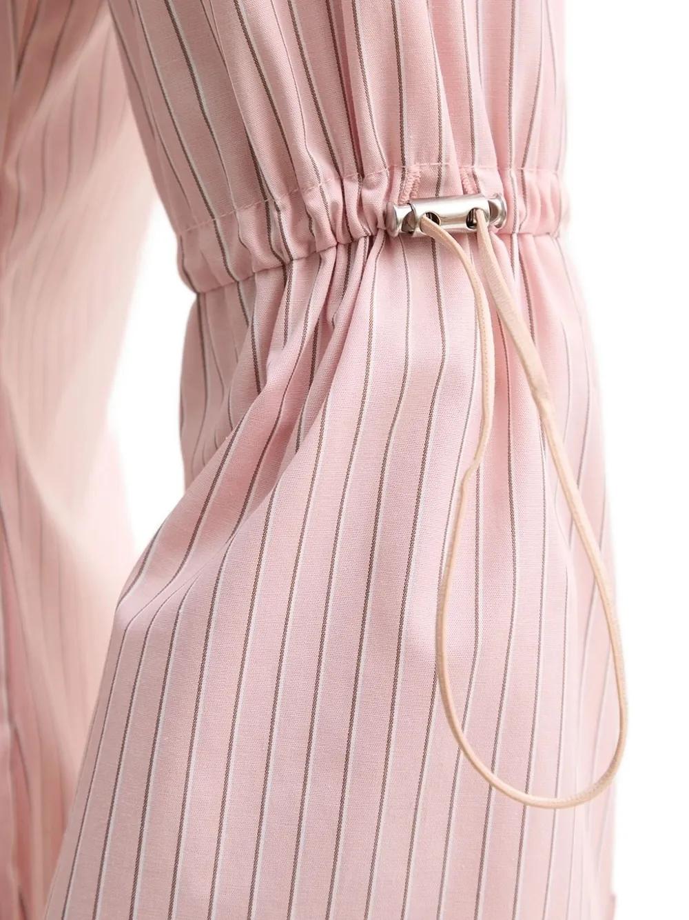 pink pinstripe pattern button fastening tie cuffs long sleeves