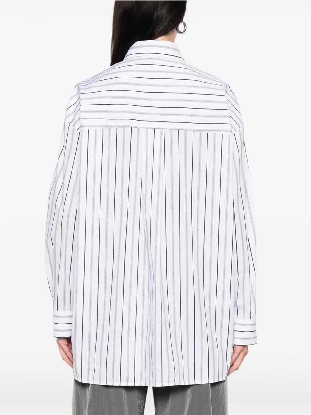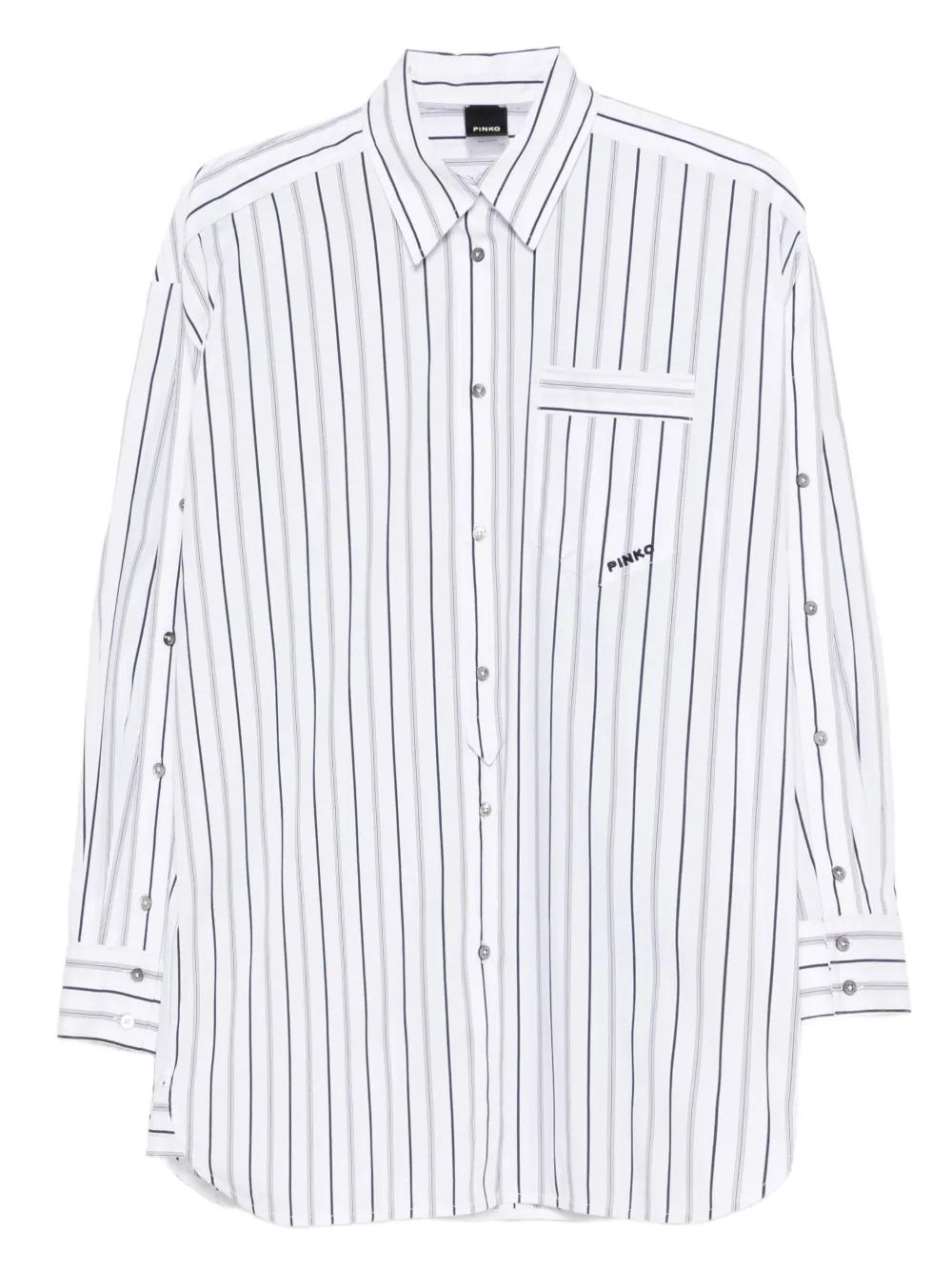 white striped pattern chest pocket button fastening long sleeves buttoned cuffs